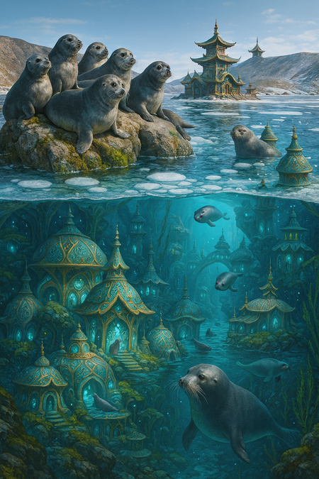 Я долгое время жила в Иркутске, рядом с Байкалом, поэтому, он стал важной частью меня. Особенной частью этого ощущения, были нерпы, милые и большеглазые тюлени, которые обитают только в озере Байкал, что делает его еще более уникальным и магическим, вместе с его самой большой в мире глубиной. Из этого ощущения и родился проект — я захотела представить, как бы выглядел наш мир, если бы у нерп была своя цивилизация: со своими обычаями, архитектурой, верой и историей.