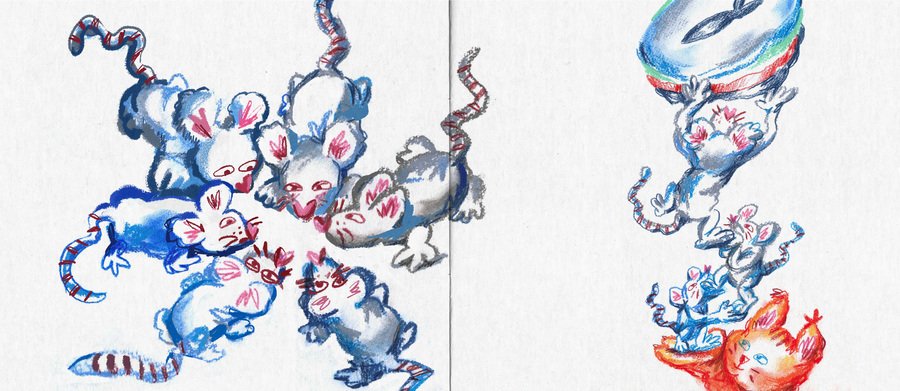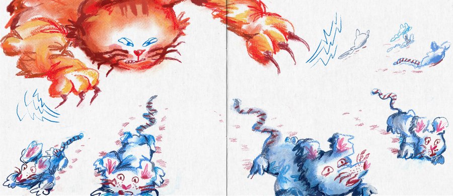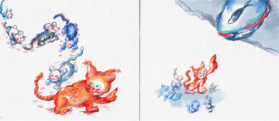 Книжка-картонка для детей от 6-ти лет. В ней рассказывается о мышках, которые смогли найти общий язык с «большим и грозным» котом и помогли ему.