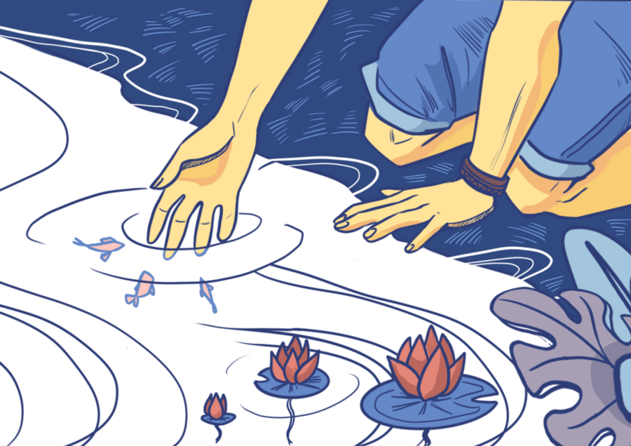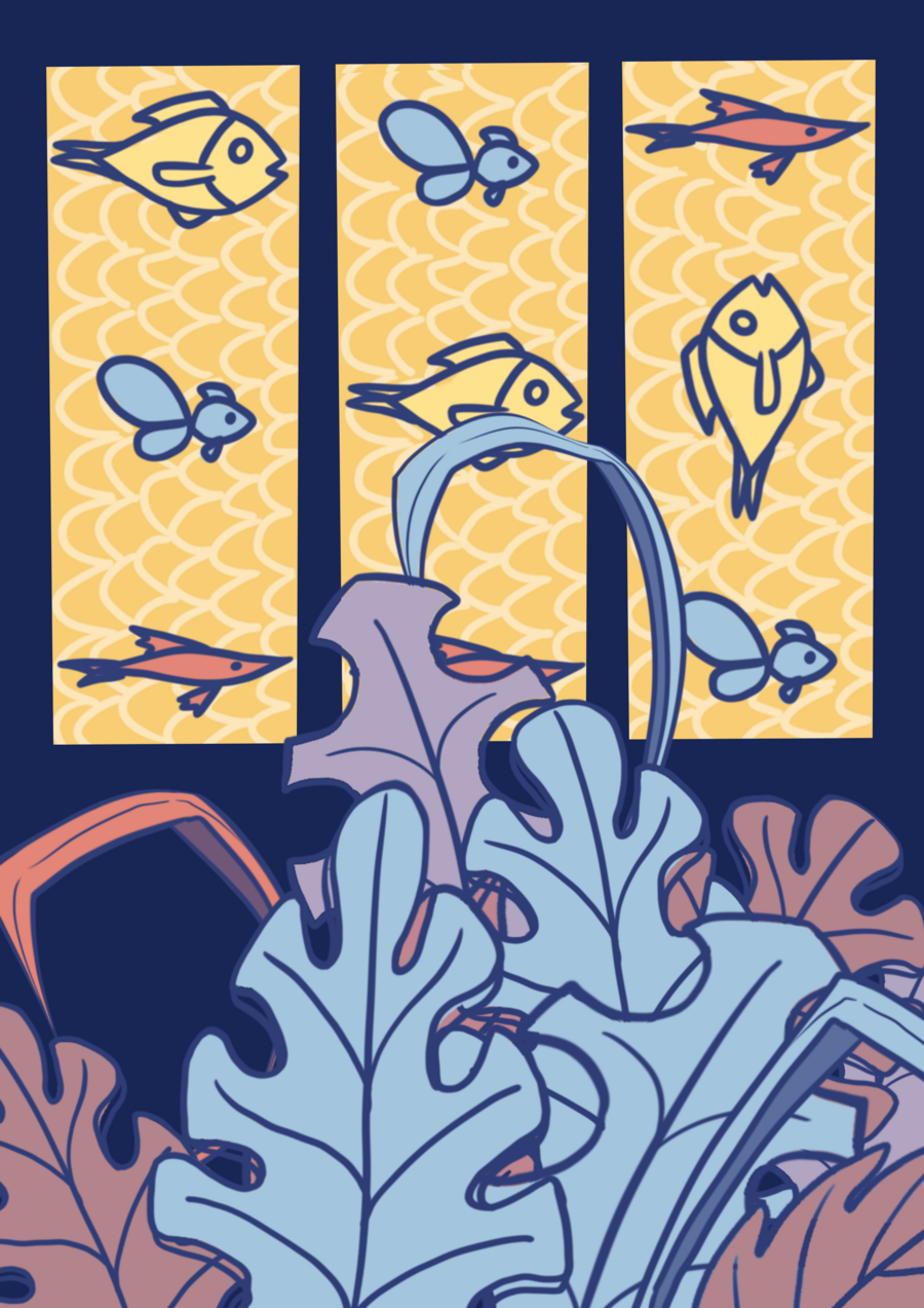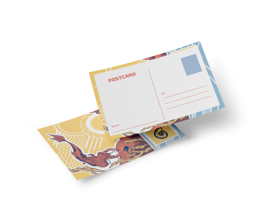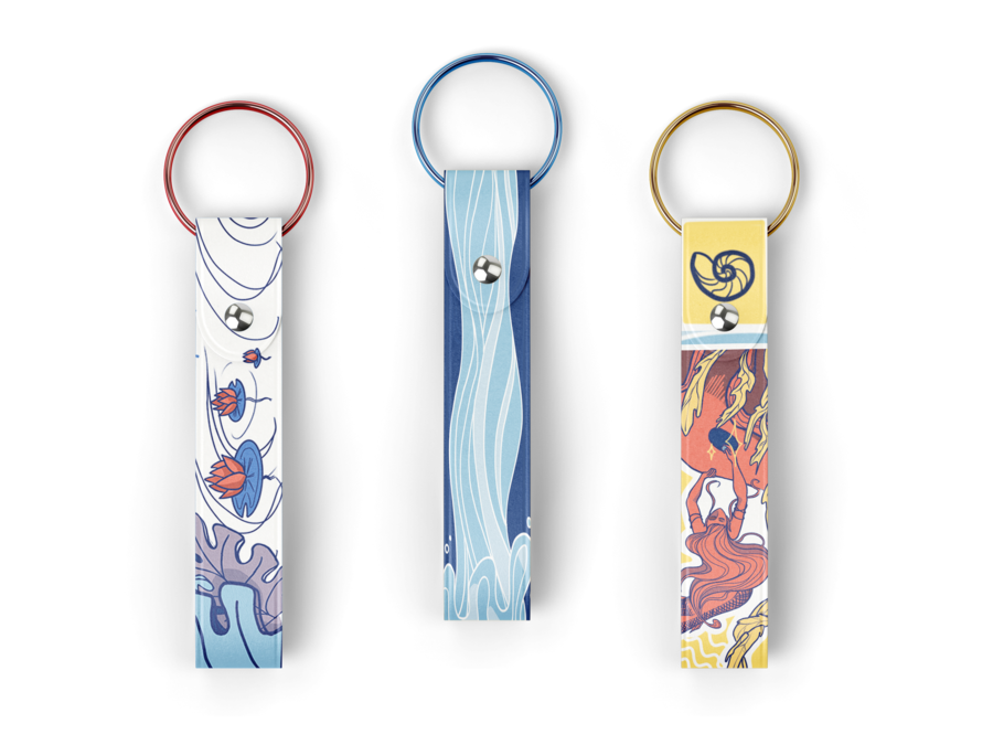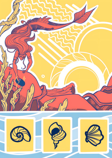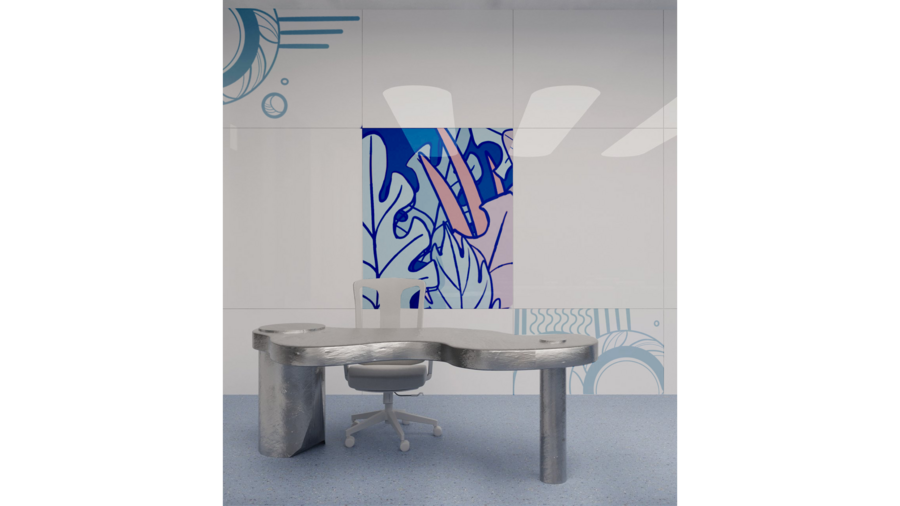 Иллюстрации зоны отдыха были вдохновлены формами окружающих предметов, таких как кресла, напоминающие водопады, или круглые ковры, на которых устроилась русалка.