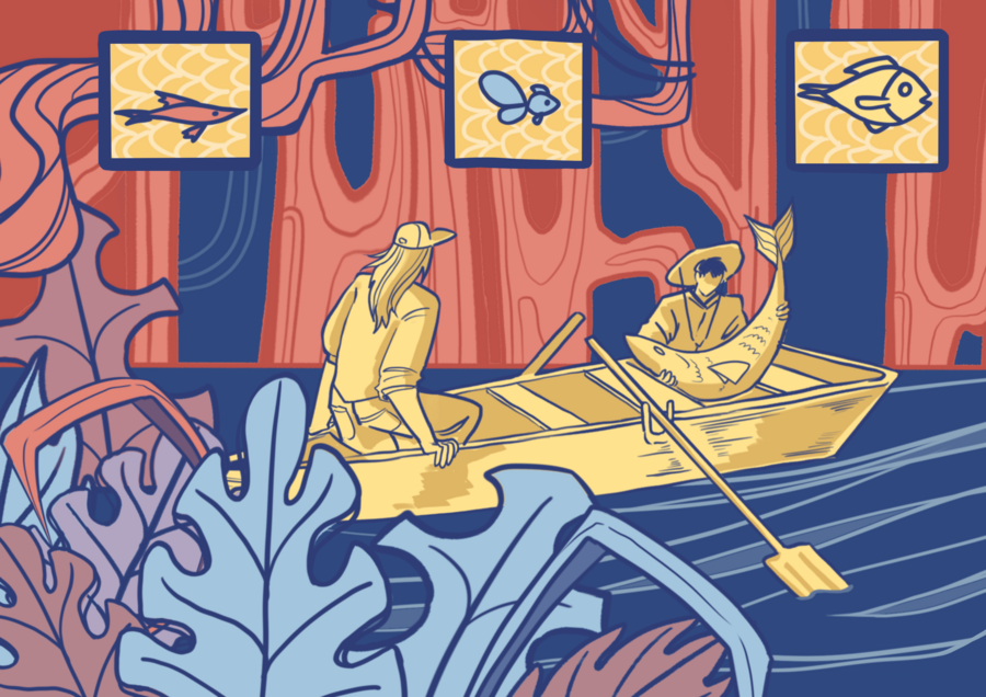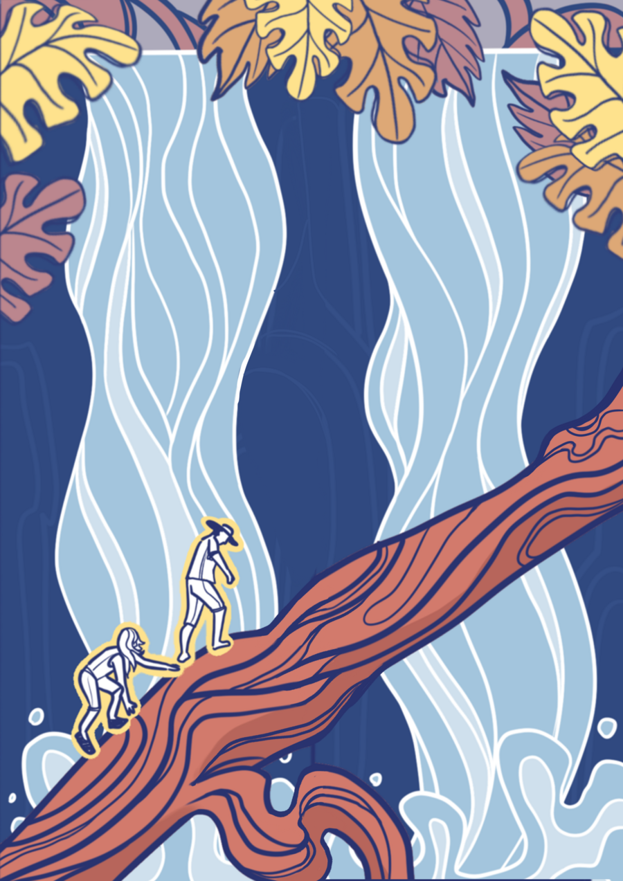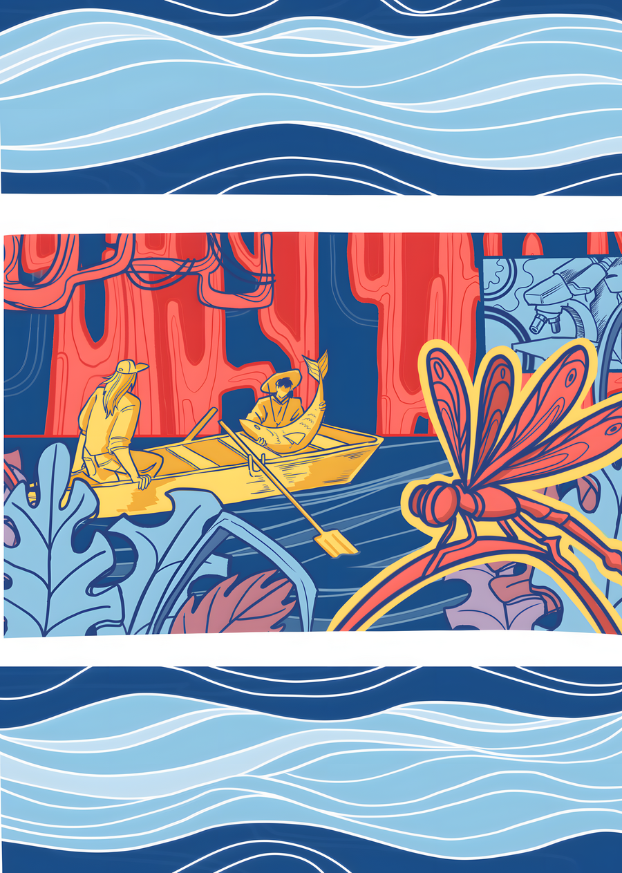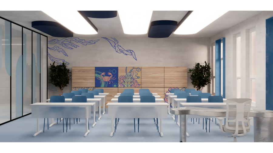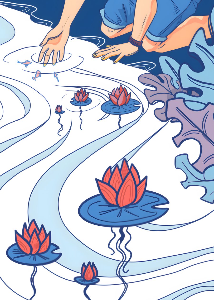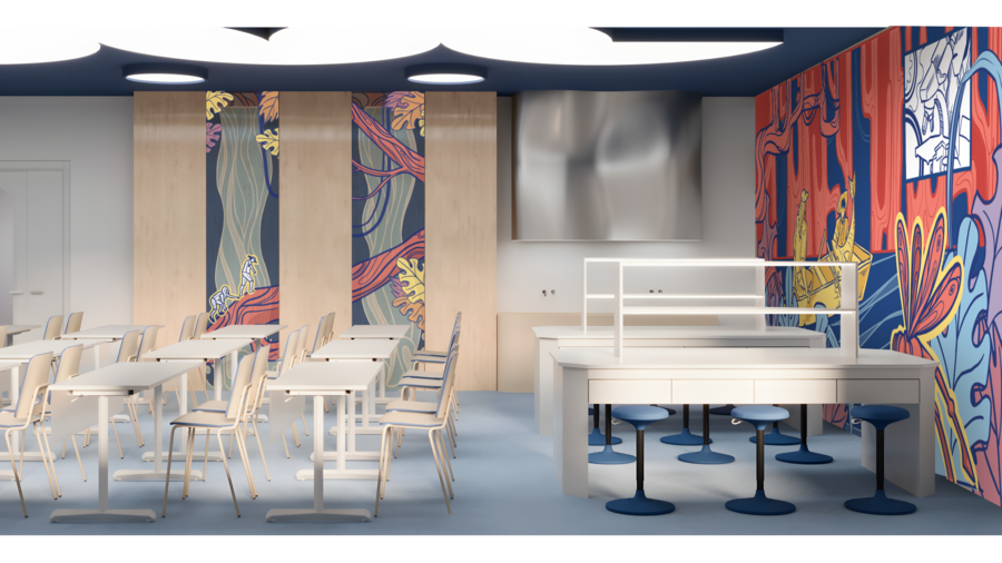 «В поисках истоков» — серия иллюстраций для дизайна школы, которые позиционируют учебный процесс как бурное течение, через которое должен пройти школьник.