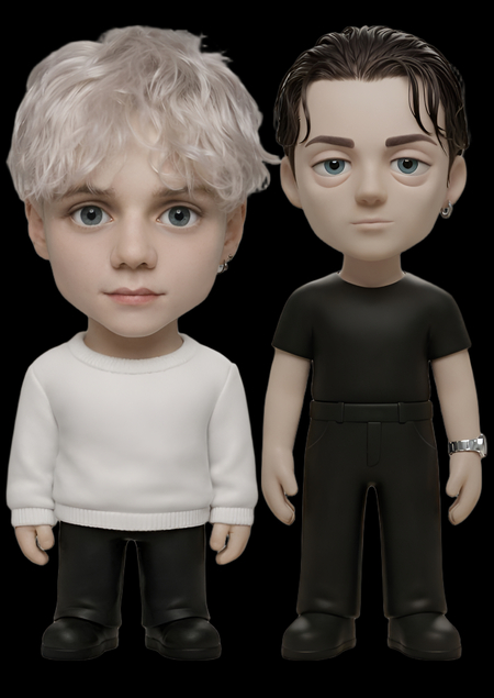 Я взяла пару фоток с концерта Вани, там, где он в своих фирменных брюках с завышенной талией. Закинула все это добро в Chat Gpt, нейросеть превратила все в 3D-модели. Получились первые наброски фигурок. Потом эти визуализации я загрузила в hyper3d Ai. Эта нейросеть уже сделала из них финальные модели.