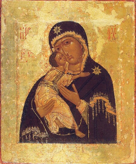 Икона. Апостол и евангелист Лука — «Владимирская икона Божией Матери» (первая треть XII века) Парсуна. Неизвестный художник — «Царь Фёдор Иванович» (1630-е года)
