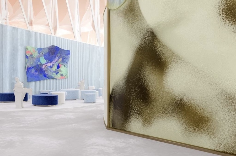 Promt: Créate art exhibition interior inspired by Maria Ender, delicate watercolor landscapes, soft pastel palette, natural light, minimalistic gallery design, paintings with misty forests, calm lakes, gentle skies, poetic and emotional atmosphere, refined composition, elegant framing, contemporary art space, serene mood, fine art photography style