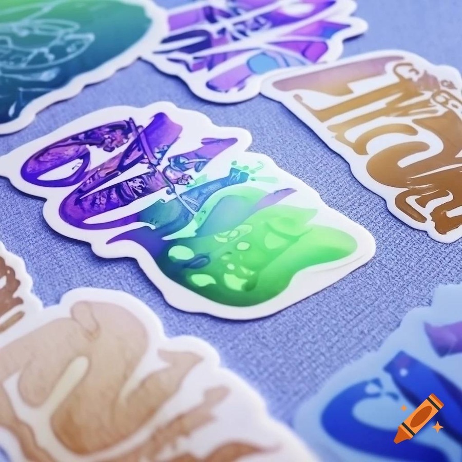 Promt: generate stickers with the name «Crystal Symphony» in purple, light green, light blue, and beige