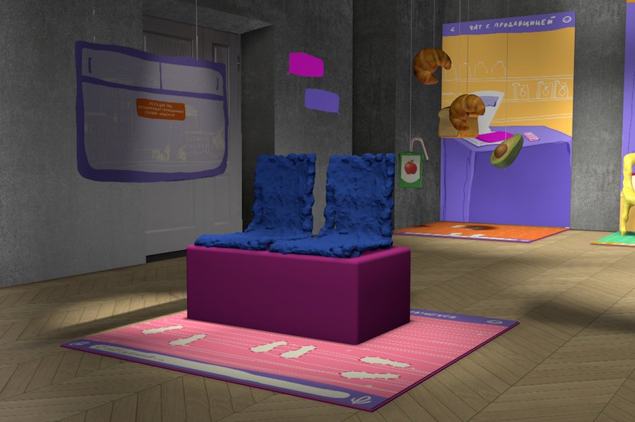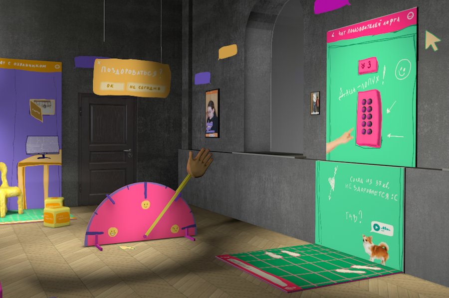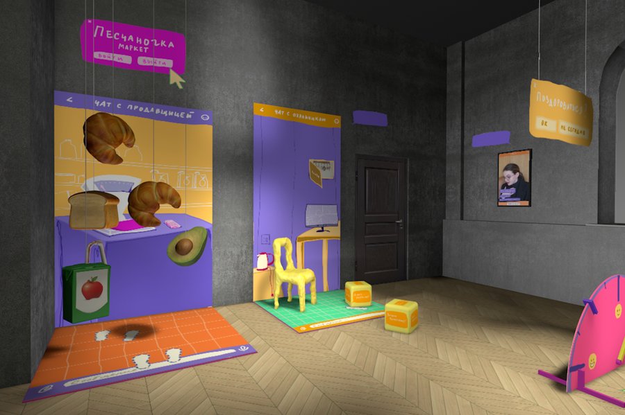 Полина Малёва, общий вид инсталляции «Выйди и зайди в чат нормально»