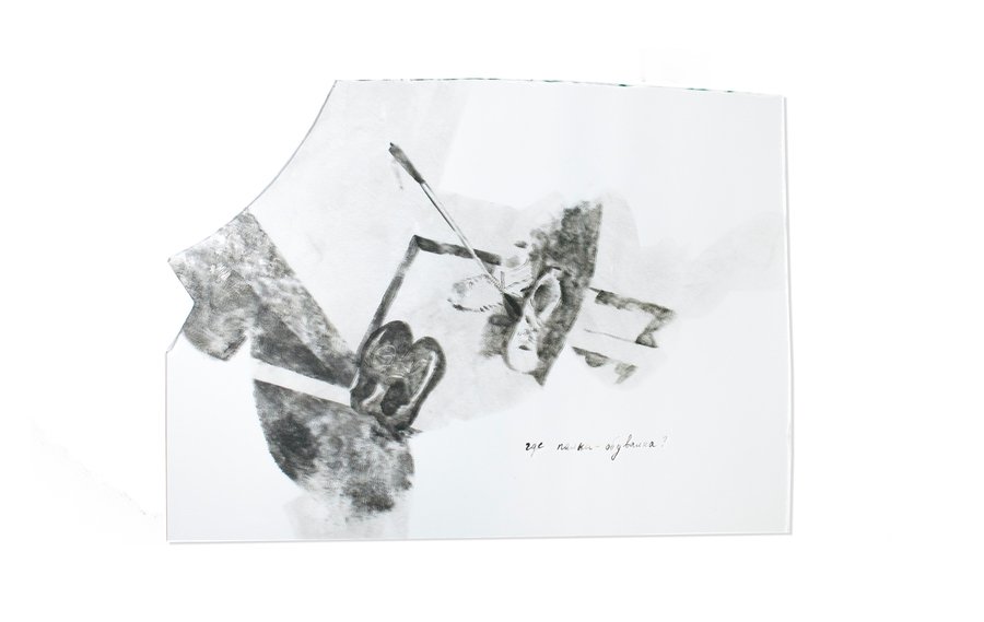 Полина Фролова «Раскололось» графика на стекле, 2025