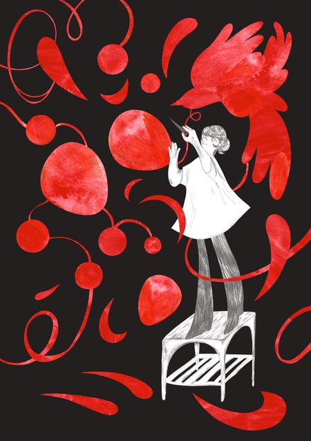 Хохлома — это яркие краски, причудливые узоры и природные мотивы. Красные ягоды, увиденные героиней, вдохновляют ее использовать эти мотивы в создании одежды и распространять их вокруг себя.