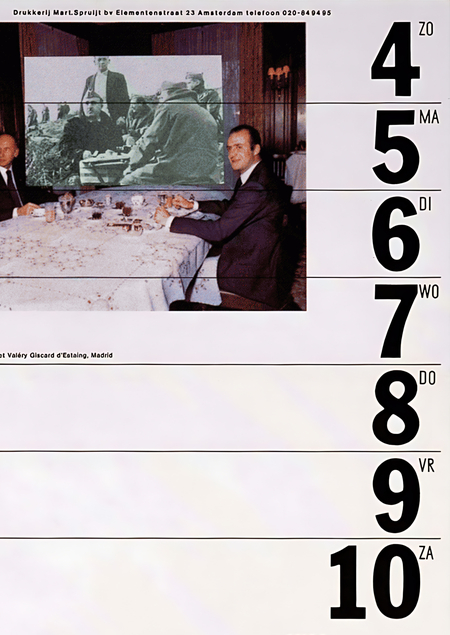Плакатист часто использовал коллажи в своих работах. Он рассматривал изображения как важный инструмент дизайна, из-за чего его интерес к СМИ и их растущей способности манипулировать изображениями только возрастал. Например, его дизайн для ежегодного календаря амстердамской типографии Март Спруйт стал отражением того, как СМИ видят жизнь людей.