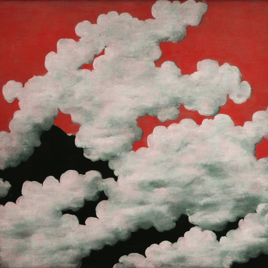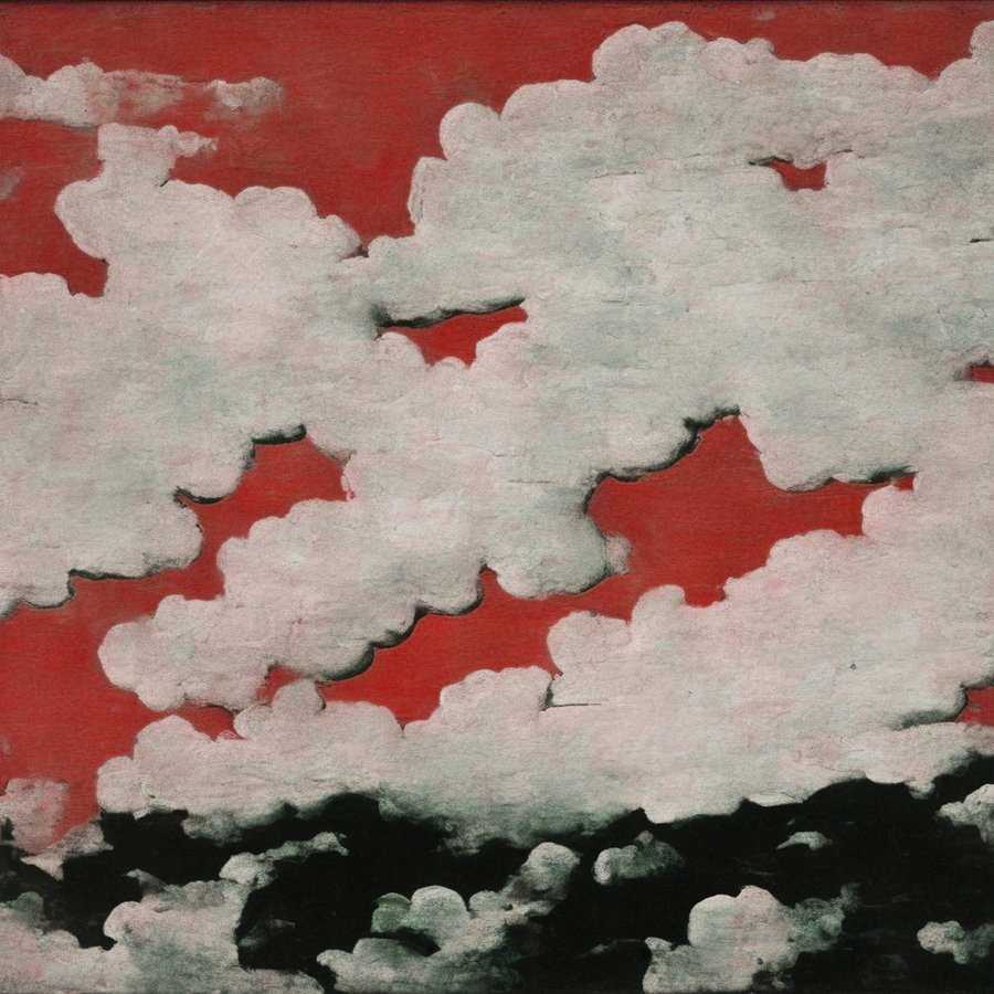 prompt: painting in PIROSMANI artsyle, minimalistic red sky with bright white clouds