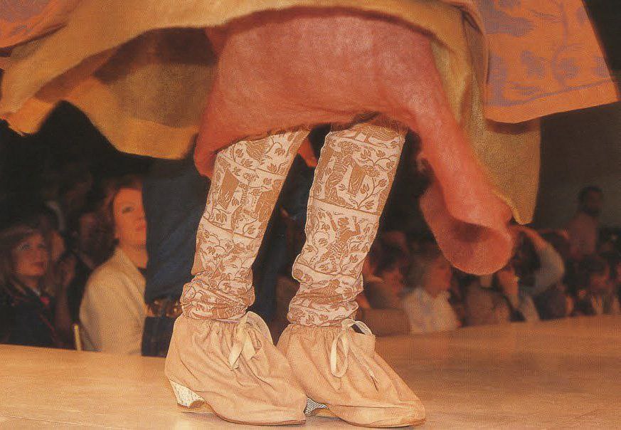 Вивьен Вествуд создала костюмы для шекспировской трагедии Richard II, совместив элементы исторического костюма и знаки панк-культуры. Ретроспективная ткань, рыцарские силуэты, стилизованные под доспехи, и при этом дерзкие акценты: шипы, разрезы, небрежные формы, деконструкция.