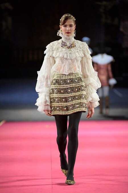 Alta Moda Dolce & Gabbana, показанная в театре La Scala, черпает вдохновение в оперных костюмах XIX века. Коллекция представляет 159 образов, которые отличаются роскошью тканей, сложной отделкой и драматичной театральностью.
