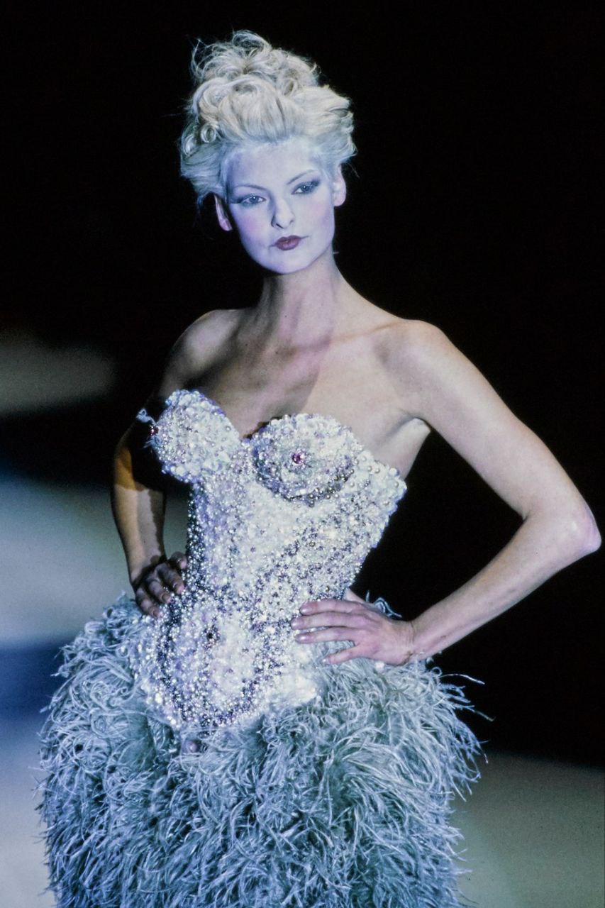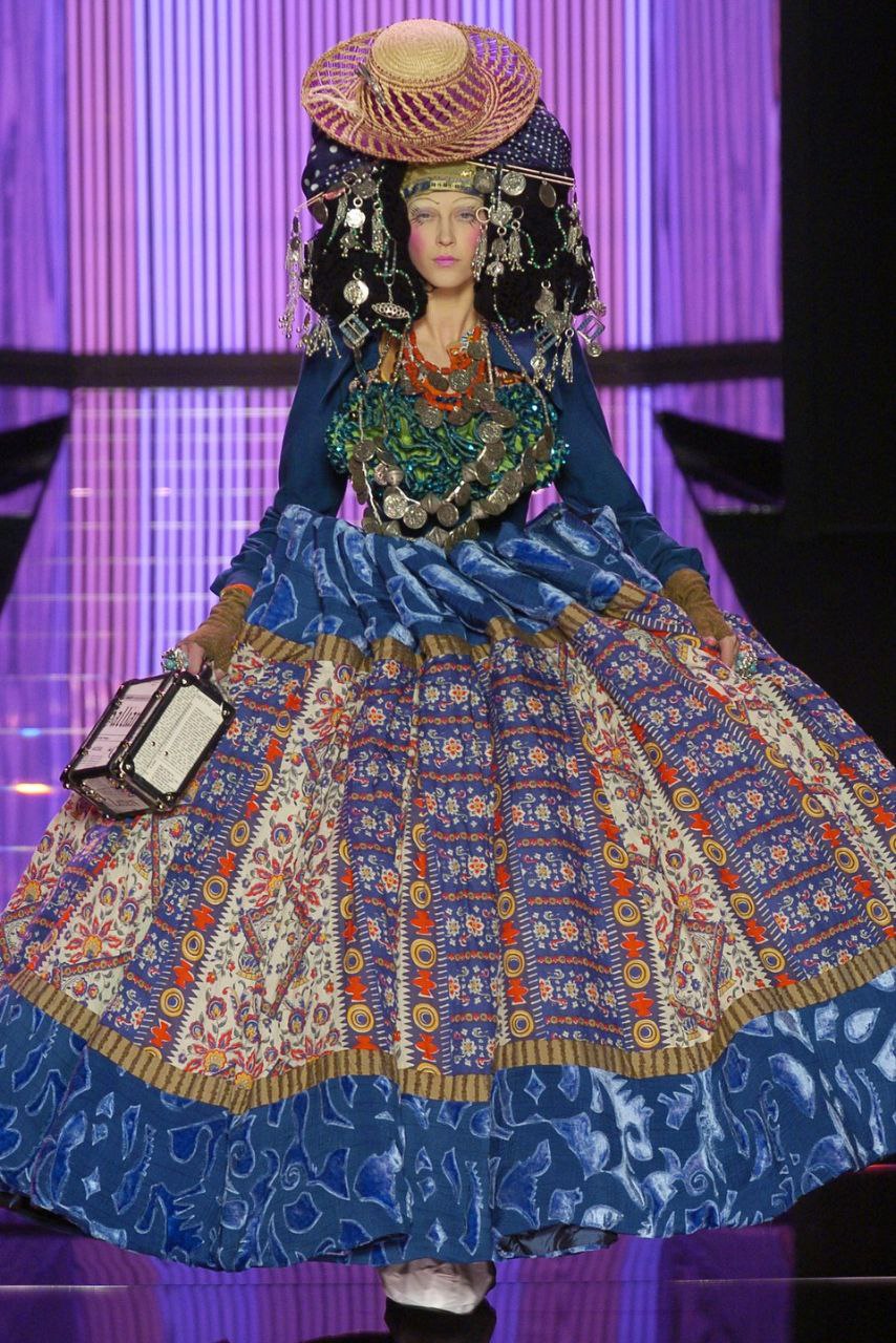 Гальяно подходил к моде как к искусству повествования. Его модели в этом показе не просто демонстрировали наряды, они играли роли: от декадентских куртизанок до авангардных ведьм. Сценография, драматические позы, макияж и аксессуары создавали атмосферу театра, а не подиума. Каждый выход был эпизодом спектакля.