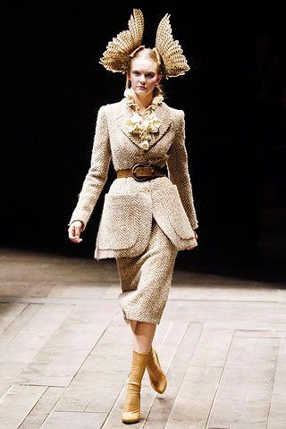 Коллекция John Galliano Fall 2004 Ready-to-Wear отсылает к театральной эстетике и образам различных исторических эпох. В показе использовались элементы, напоминающие сценический грим, парики и характерную мимику актёров. Образы включали костюмы, вдохновлённые викторианской и эдвардианской модой, французским кабаре и стилем начала XX века. Материалы и декор нарочито стилизованы под старину — рваные кружева, состаренные ткани, асимметричные формы и многослойность. Все это усиливало эффект «живых театральных персонажей» на подиуме.