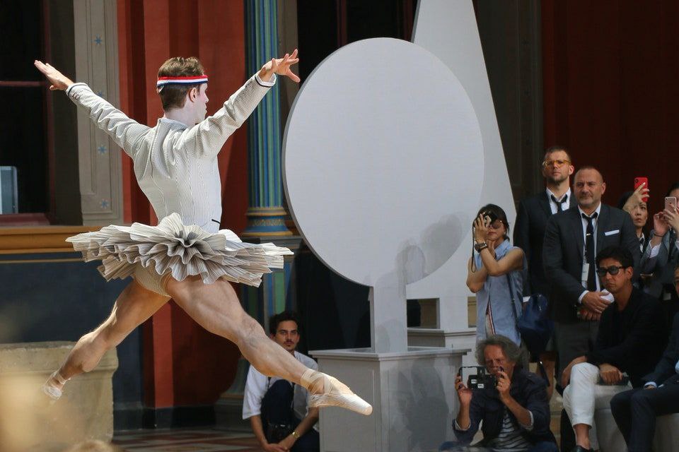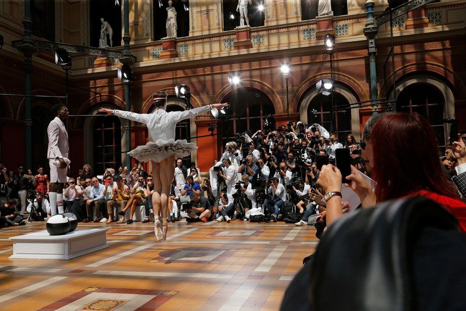 Показ Thom Browne Весна/Лето 2020 прошёл в форме перформанса, где модели взаимодействовали с балетными танцорами, включая Джеймса Уайтсайда из Американского театра балета. Шоу происходило в сценографии, напоминающей античный театр.