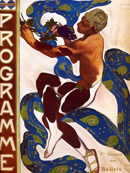 Вацлав Нижинский • образ Фавна в балете «Послеполуденный отдых фавна» • 1912 г.; Леон Бакст • эскиз костюма к балету «Послеполуденный отдых фавна» • 1912 г.
