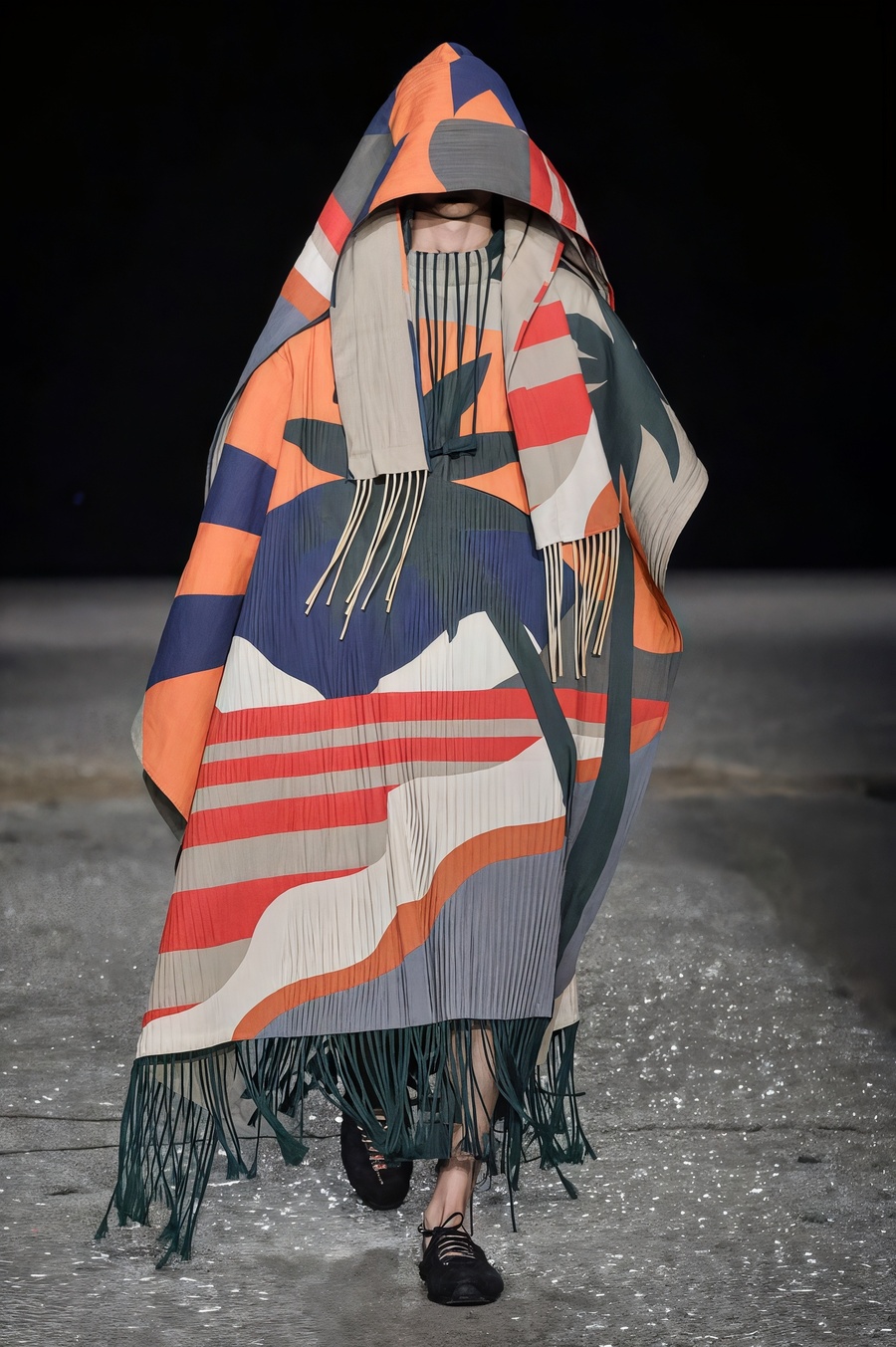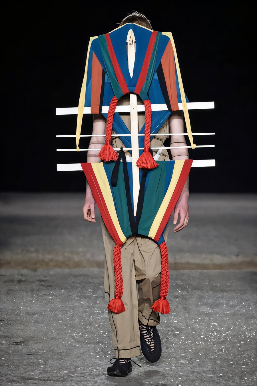 Коллекция Comme des Garçons демонстрирует, как мода может выходить за пределы показа и становиться художественным перформансом. Кавакубо превращает подиум в сцену, а образы — в персонажей, отсылающих к театру, авангарду и современному искусству. Это пример того, как театрализация в моде может не поддерживать сюжет, а сама становиться его заменой. Эта коллекция — пример, где модный показ становится формой театра, а дизайнер — полноценным режиссёром визуального действия.