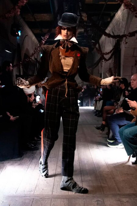 Westwood обращается к Commedia dell’arte как к первоисточнику театральной выразительности, где костюм служит не только украшением, но и важным элементом идентификации персонажа. В её коллекции театральность пронизывает каждый элемент, а панк-эстетика придаёт образам современную дерзость и социальный подтекст. Это демонстрирует, как театральные коды и образы могут быть переосмыслены и перенесены на подиум, превращая одежду в средство провокации и драматургии. За счёт этого «от подиума к сцене» превращается в двусторонний процесс — театр вдохновляет моду, а мода, в свою очередь, придаёт театру новые визуальные смыслы.