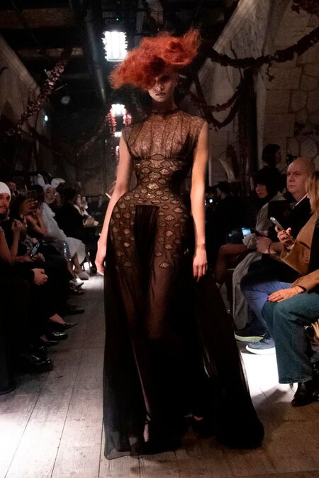 McQueen всегда стремился к синтезу моды и искусства, и эта коллекция — кульминация его подхода. Костюмы, вдохновлённые шотландской историей, традициями траура и барочной эстетикой, превращают моделей в героинь трагической драмы. Само шоу развивается как театральный акт: от напряжённого вступления до катарсиса в виде голограммы — эфемерного призрака, заключающего тему утраты, памяти и красоты.