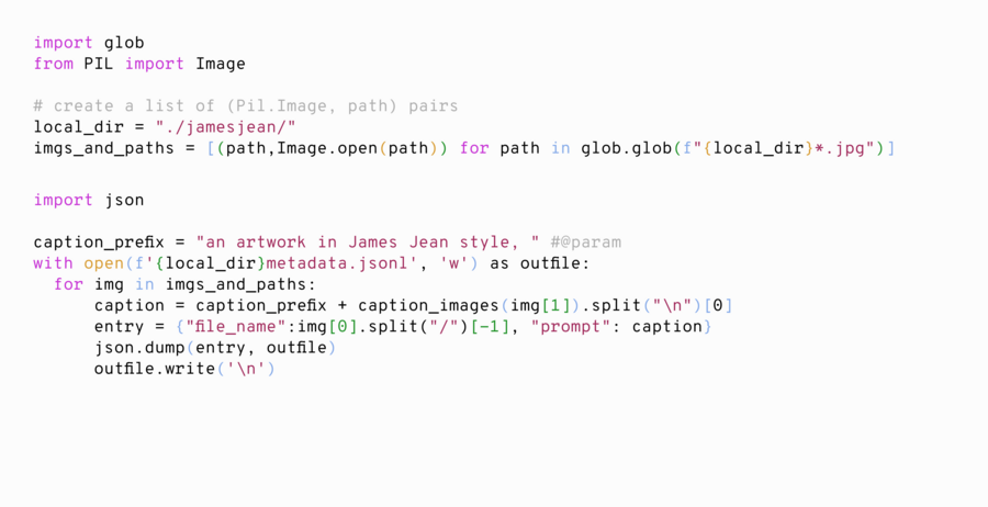 Далее для создания описаний к картинкам датасета я установила библиотеку BLIP. Описание каждой картинки должно начинаться со строки «An artwork in James Jean style…»