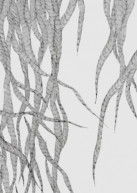 Дальше в творчестве художницы возникает несколько пластических мотивов, связанных с теми материалами, через которые она фурмулирует своё высказывание.