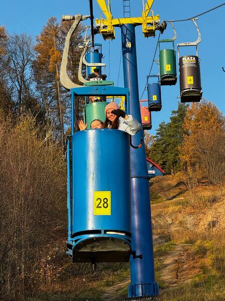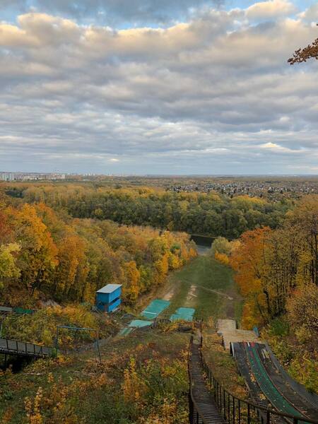 Вот и сами трамплины. Кажется, где-то в окрестностях кто-то действительно занимается горнолыжкой, но конкретно это место уже давно запущено. Ну, как сказать. Это такое же излюбленное местечко для всех парочек или друзей, которые любят спорт: в конце концов, чтобы подняться с трамплина, нужно пройти целых 329 ступеней старой лестницы.