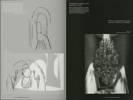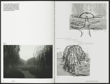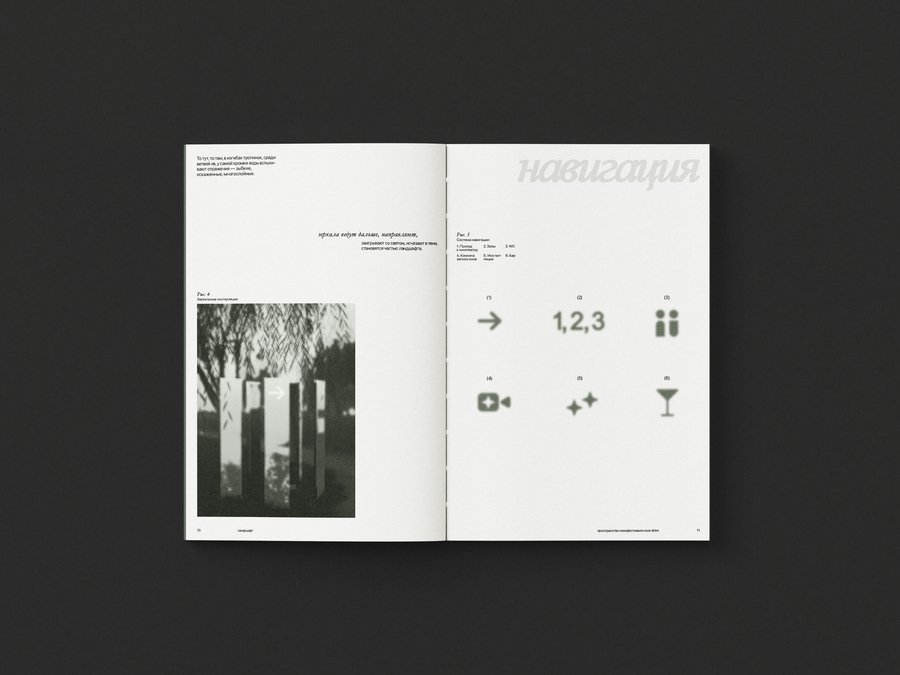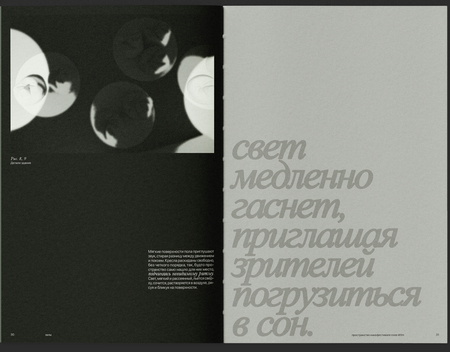 Путеводитель по пространству кинофестиваля снов приглашает читателя пройти путь от входа на территорию фестиваля до самого кинозала, постепенно погружаясь в атмосферу мира сновидений. Издание меняется, подобно смене дня и ночи, так же как и пространство меняет свой облик и атмосферу в течение дня.