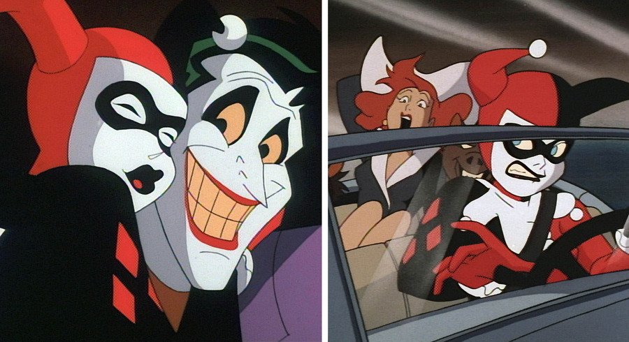 Первое появление Харли Квинн произошло не в комиксе, а в мультсериале «Batman: The Animated Series» 1992 года. Сценарист Пол Дини придумал сцену где Джокер должен был вылезти из торта и распылить газ, но затем им показалось что эта сцена не подходит герою. После чего было принято решение добавить компаньонку для антигероя.