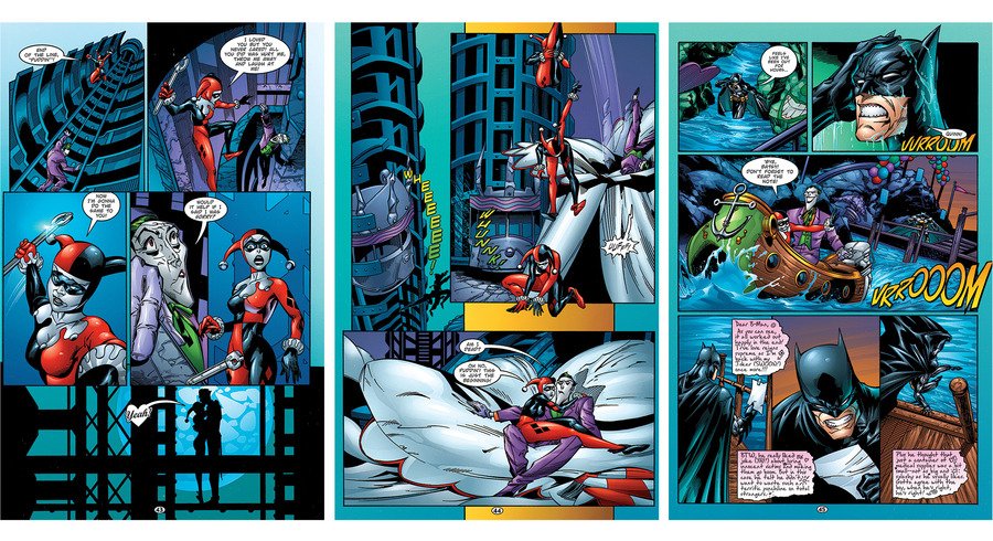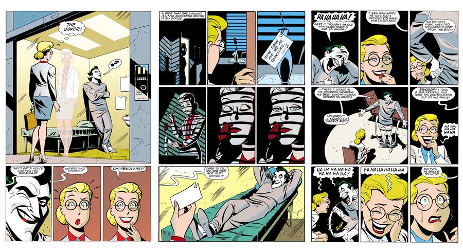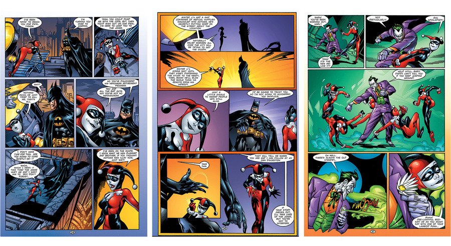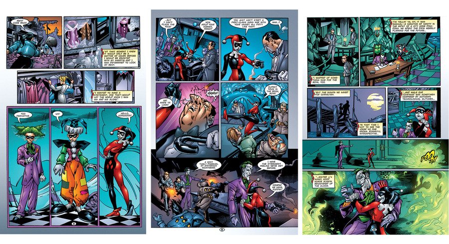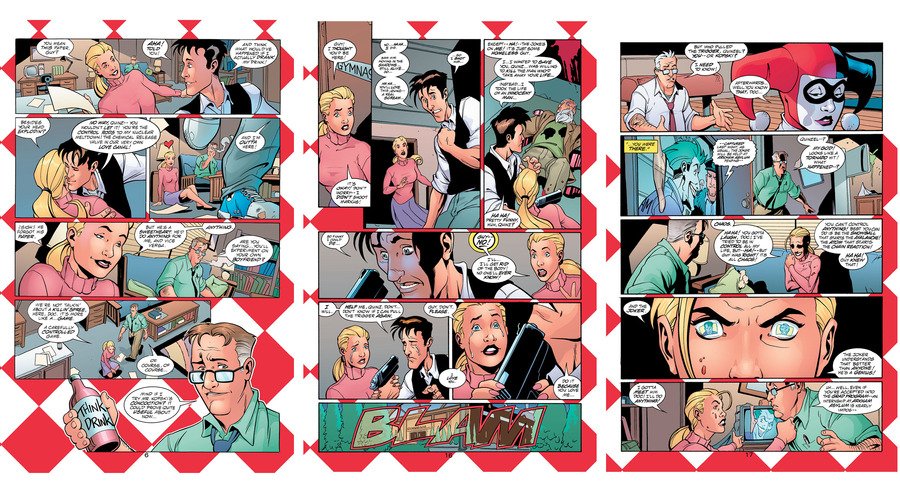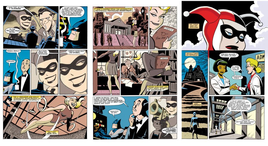 Здесь нам как раз раскрывают насколько Харли не простой персонаж. Что перед тем как влюбится она была психотерапевтом, но познакомившись с Джокером решила доверится и перейти на его сторону. Ее история дает нам понимание о том откуда у нее такие навыки. Откуда столько безумия и одержимости. Автор комикса очень хорошо прорабатывает персонажа, показывая каждую деталь в ее истории.