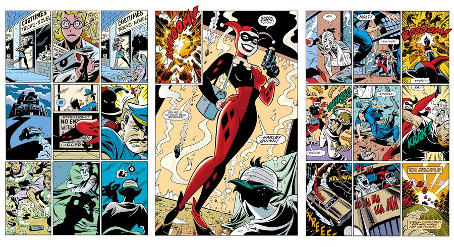 Большую часть выпусков Харли Квинн находится в своем привычном образе — красно черном костюме арлекина. Но здесь впервые мы видим ее в других образах и воспринимаем уже не только как злодейку, но и как обычного человека.