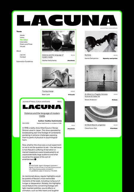 Сайт для издательской платформы Lacuna, посвященной критической теории, медиа, культуре и технологиям.