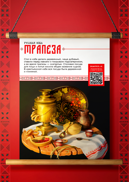 Серия интерактивных постеров «Русская изба» включает четыре постера, каждый из которых является отдельной тематической композицией. Три постера оснащены QR-кодами для доступа к дополненной реальности, а иллюстрации на этих постерах выступают в качестве триггеров.
