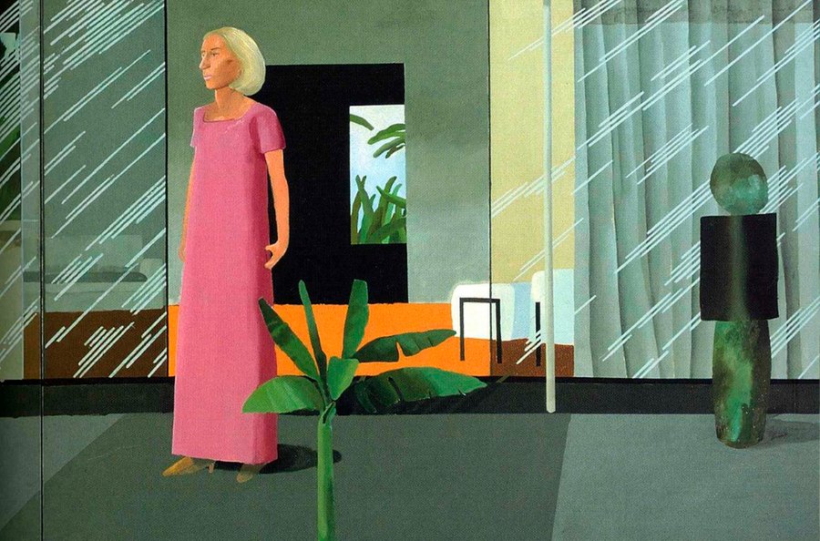 Картины Дэвида Хокни с калифорнийскими пейзажами изображают настоящий рай на земле, но, если присмотреться, этот рай больше похож на искусственную декорацию. В этом идеализированном мире часто люди исчезают, оставляя за собой только предметы интерьера.