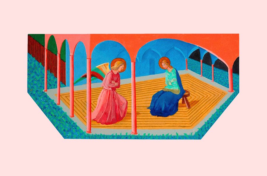 «Благовещение II, после Фра Анжелико», 2017, Дэвид Хокни; «Благовещение», 1427, Фра Беато Анжелико