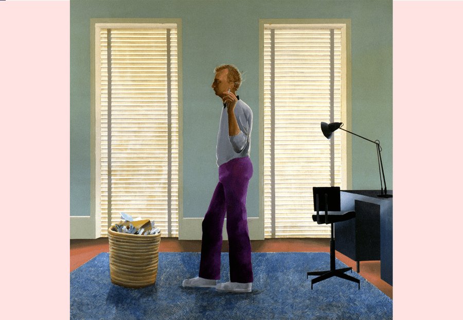 В работах Хокни яркий и жизнерадостный розовый цвет иронично натянут на грустных персонажей, что придаёт картинам больше трагичности.