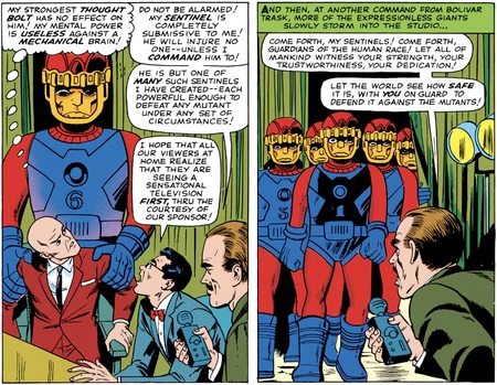 Одними из основных врагов юных иксменов становятся Стражи — смертоносные машины, созданные ученым Боливаром Траском для уничтожения мутантов. Первый дизайн роботов выглядит, конечно, несколько несуразно, но сам факт их появления закладывает фундамент для дальнейшего развития Стражей в качестве постоянных антагонистов в комиксах о Людях Икс. Причиной создания подобного оружия массового поражения в сюжете служит отражение «угрозы мутантов», которая во многом соответствует «Красной угрозе» (англ. Red Scare) — реальной антикоммунистической идеологии в США и других странах, которая была направлена на предотвращение мировой большевистской революции.