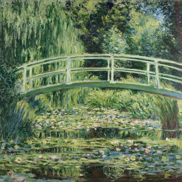 1. Утагава Хиросигэ. «Окрестности храма Тенджин в Камейдо». 1856 год. Серия «Сто знаменитых видов Эдо». Частное собрание. 2. Клод Моне. «Белые кувшинки». 1899 год. Пушкинский музей, Россия.