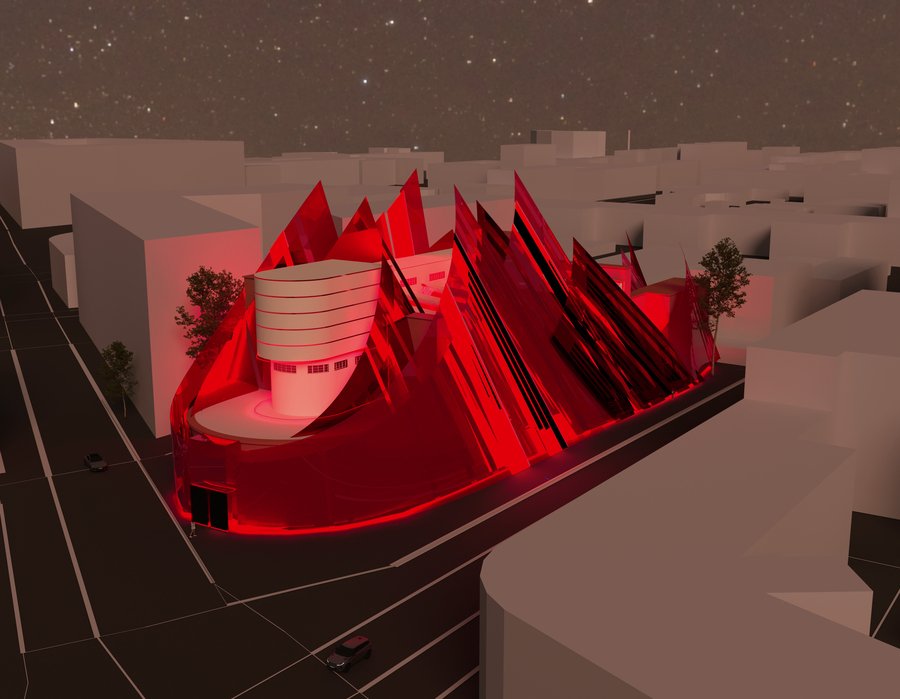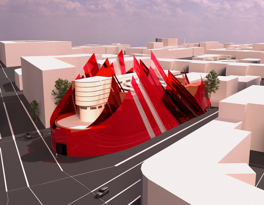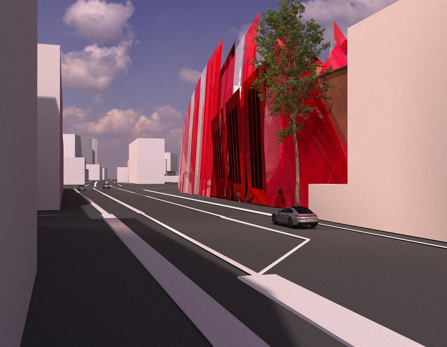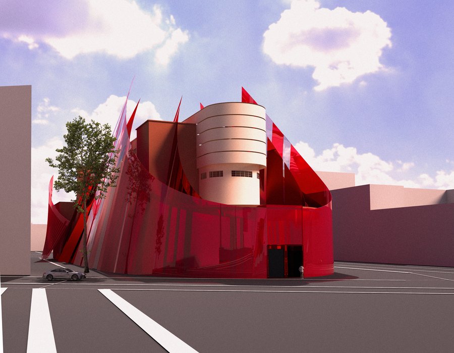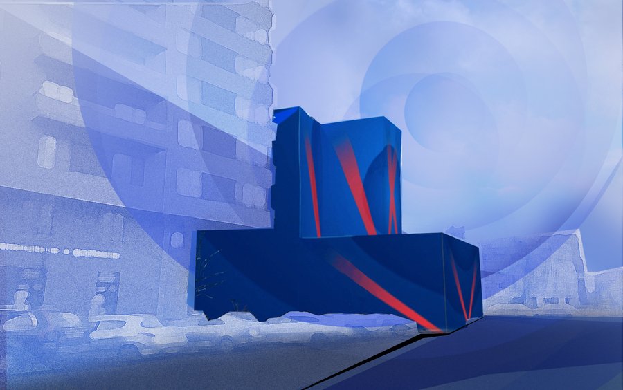 Фасады к выставке «Квартал динамизма», отображают в себе главную философию футуризма: стремление и движение.