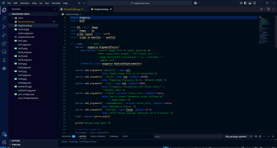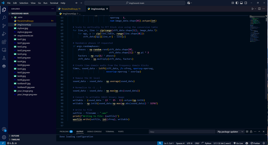 Сам процесс конвертации изображения в звук представлен в виде скрипта на ЯП Python.