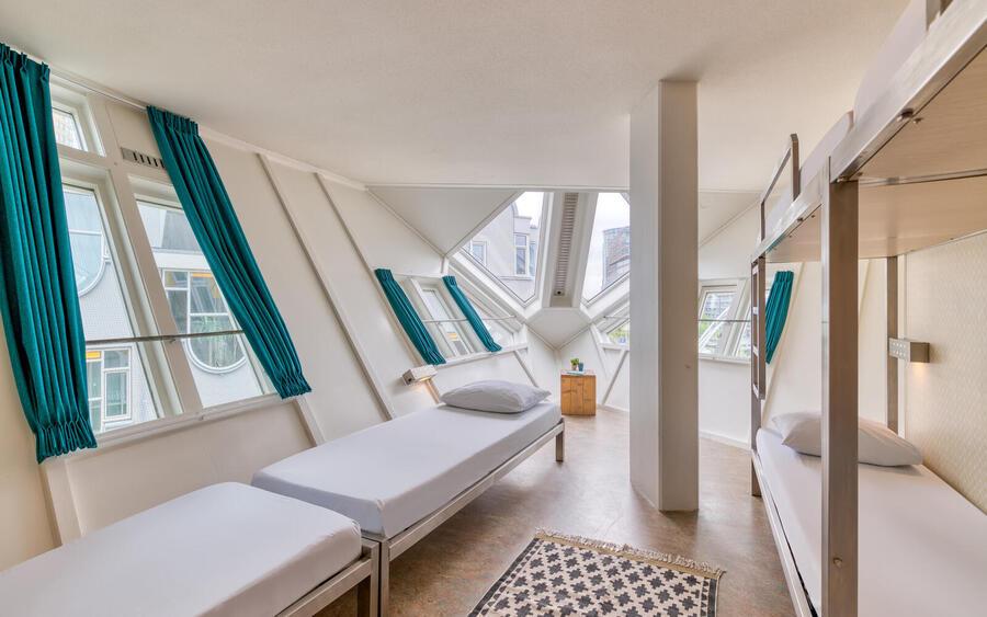 Номера представляют собой кубики, хаотично разбросанные на крыше первого традиционно горизонтального этажа, где располагается ресепшн и холл хостела с баром. Да что говорить — посмотрите картинки и убедитесь сами. А лучше, конечно, в живую все проверить, потому как интерьер тоже безумно радует. Голландцы, как всегда, в ударе. А если учитывать, что хостел всего в паре шагов от порта, баров, кафе, музеев и прочих достопримечательностей, то хочется прослезиться.