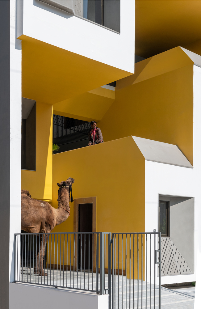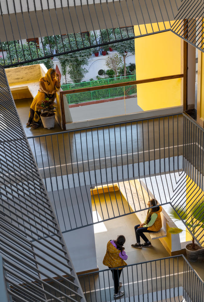 Работая с элементами традиционного хавели (форма дома Раджастана), такими как вертикальные дворы, джарокхи (смотровые балконы) и каменные джали (перфорированные ширмы), проект представляет собой переработку формы хавели, адаптированную к программным потребностям студентов. В отличие от окружающих типов рядных домов, которые вместе образуют непроницаемую стену на улице, хостел «Кота» открывается, оживляя улицу видом на внутренний двор, а затем на детскую площадку за участком.