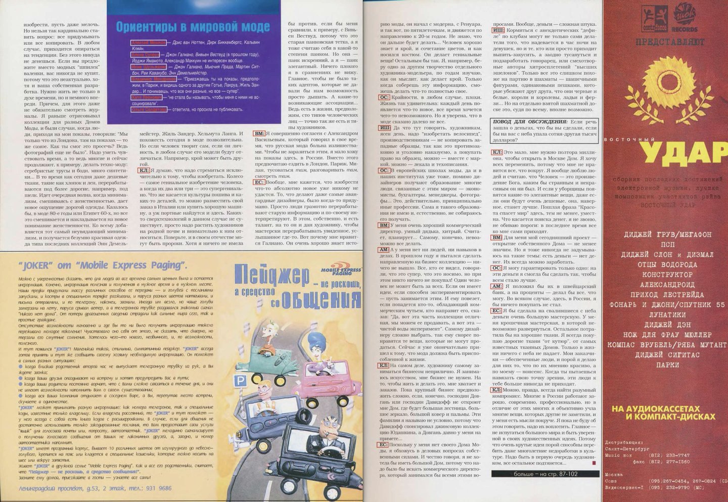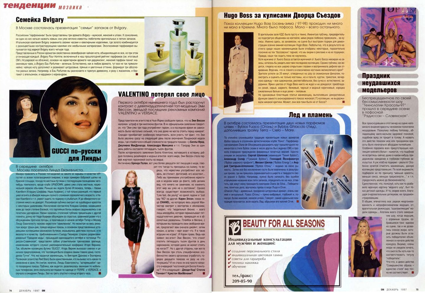 Тем не менее, кроме новостей о показах и открытиях магазинов, на страницах журнала можно было прочитать и интервью с российскими дизайнерами, и встретить съемки, показывающие отдельные коллекции или одежду нескольких дизайнеров сразу.