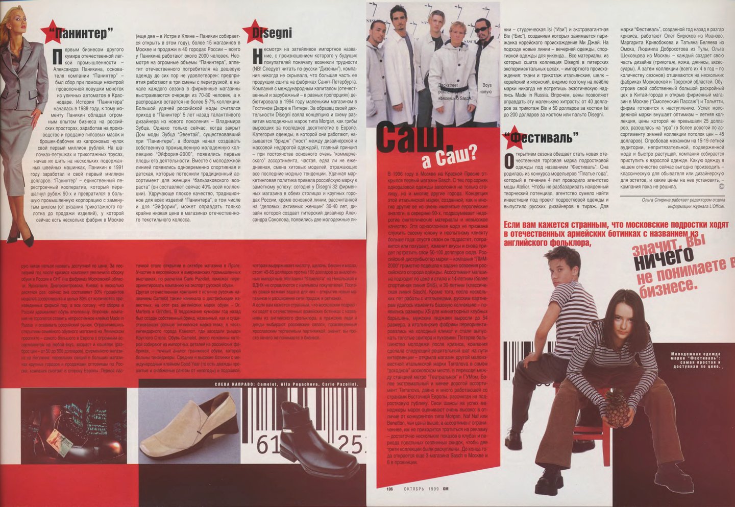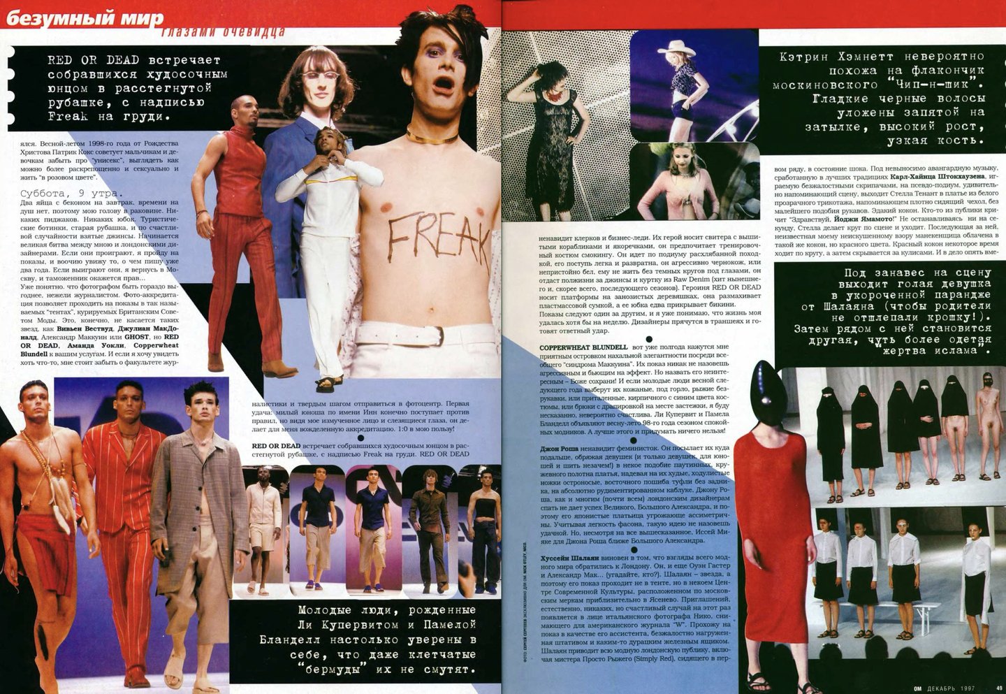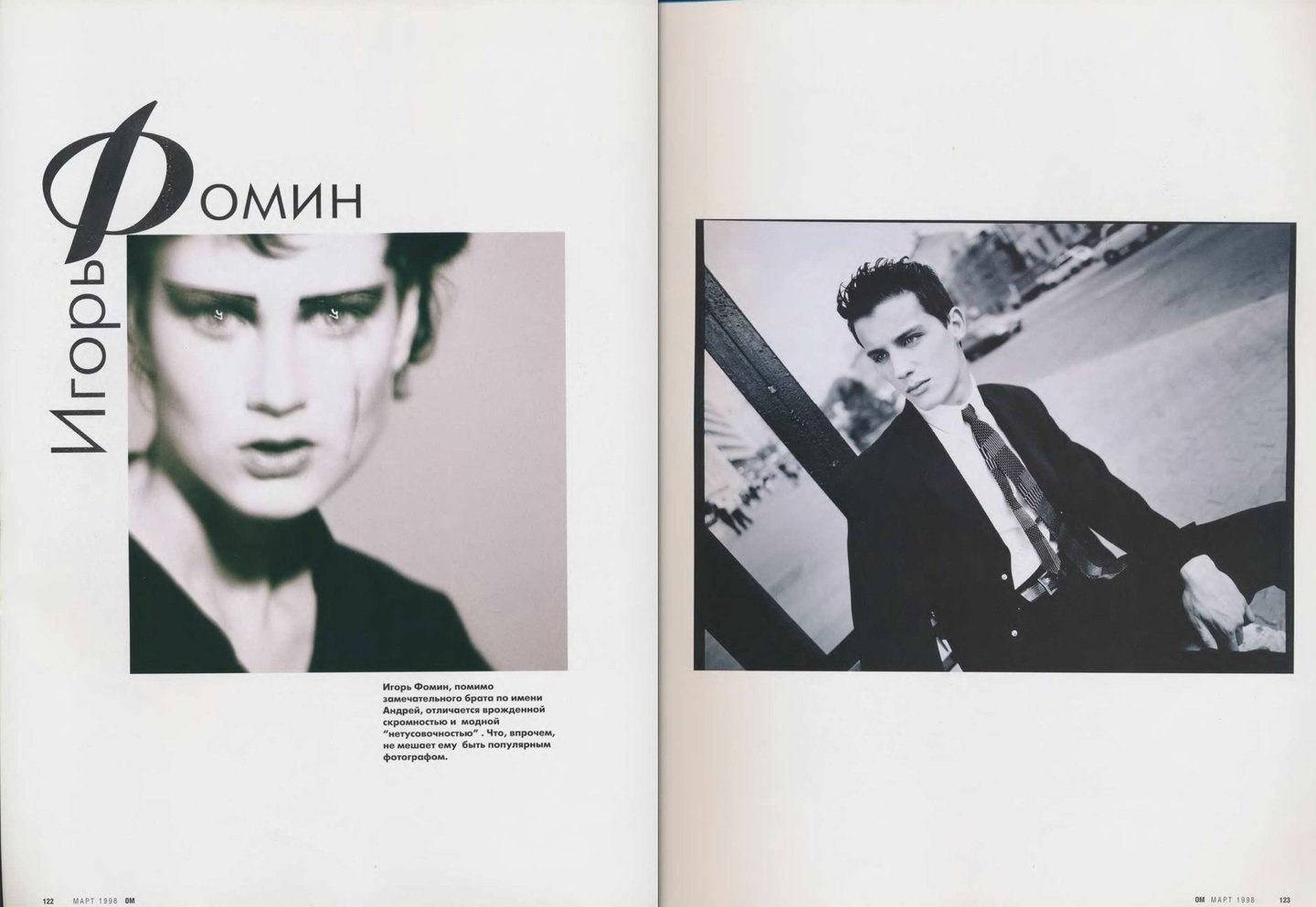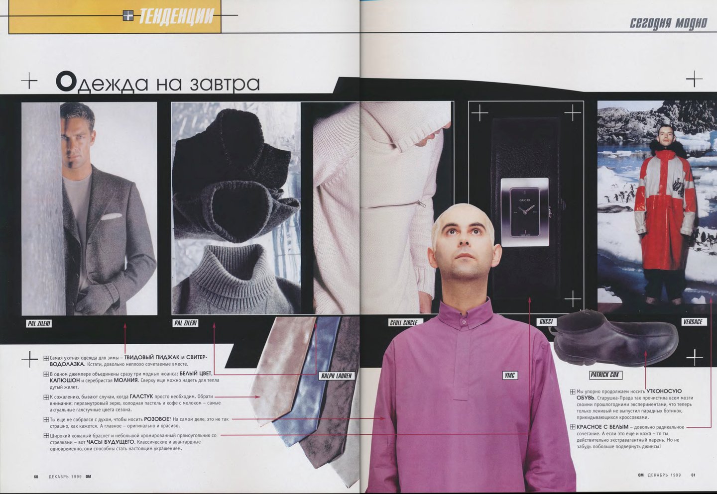 Кажется, что материалов о российской моде в «ОМе» было сравнительно меньше, чем, например, в «Птюче». Все-таки журнал уделял внимание в первую очередь тому, что можно было легко купить и носить, одежду российских дизайнеров, тем более мужскую достать было непросто.