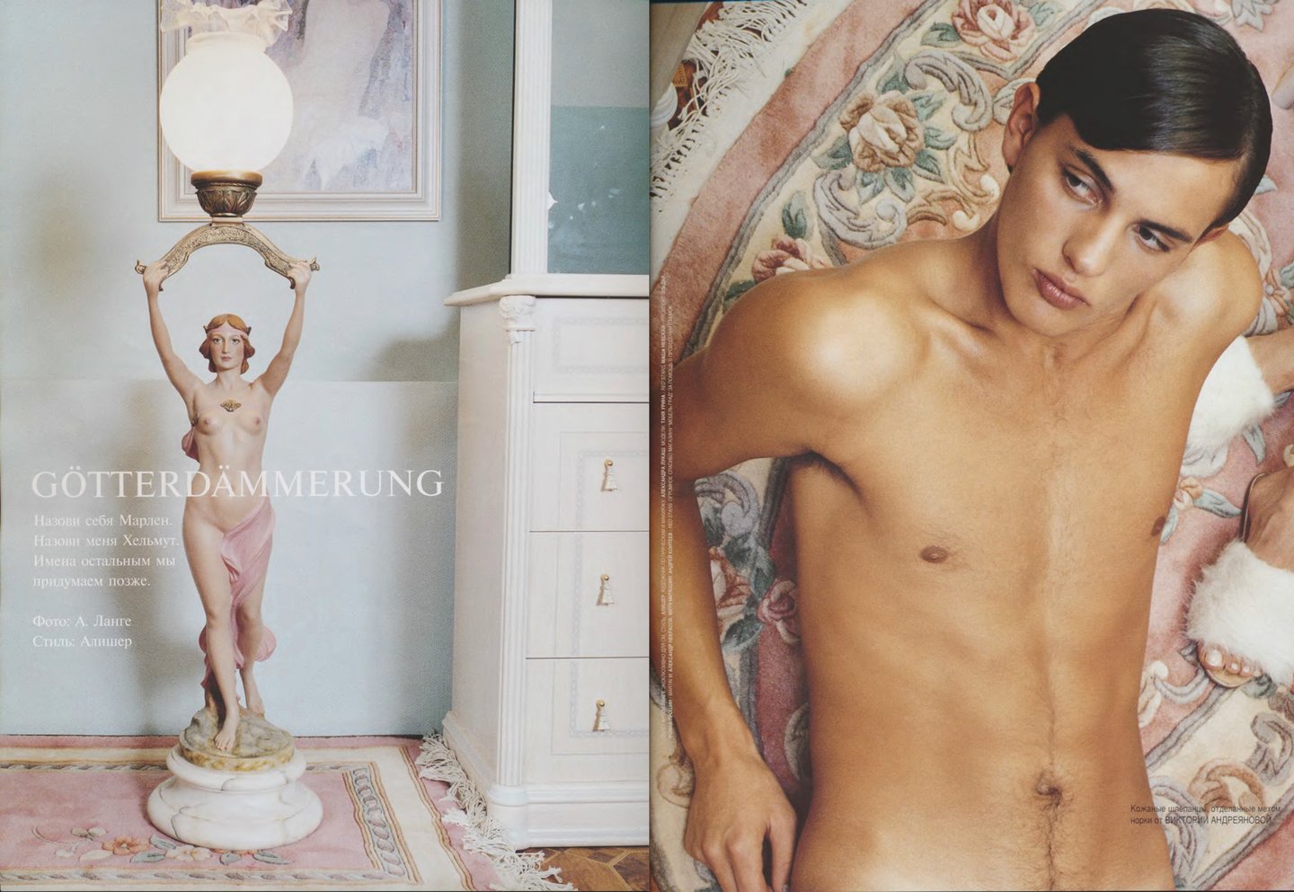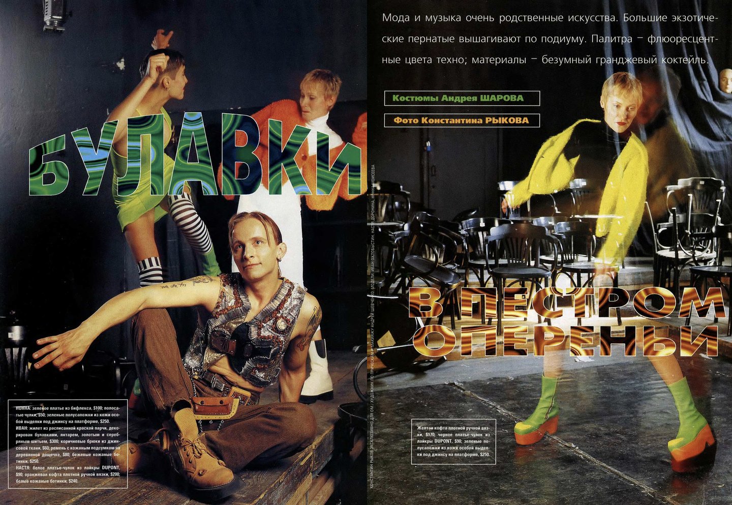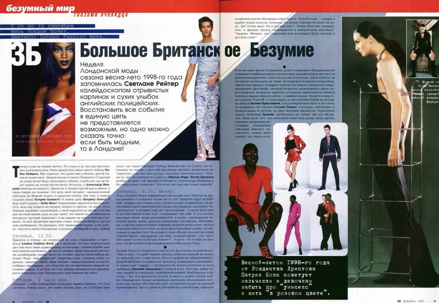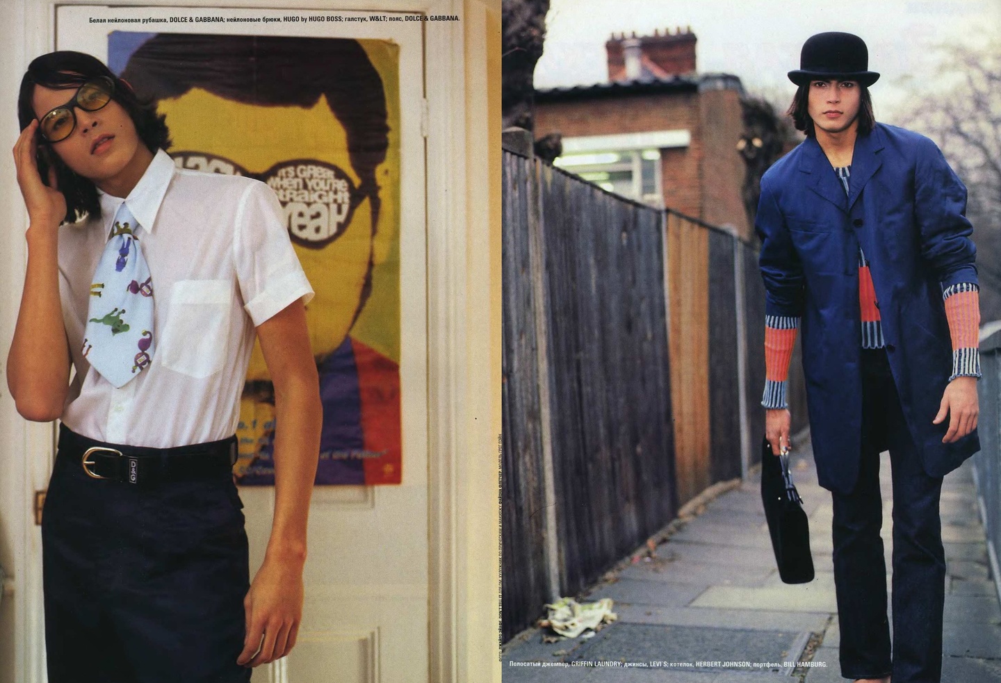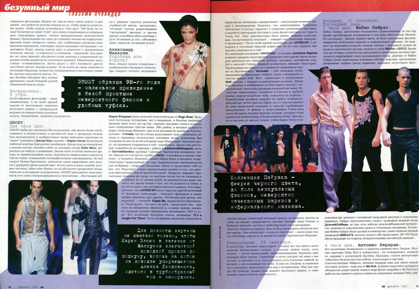 Кажется, что материалов о российской моде в «ОМе» было сравнительно меньше, чем, например, в «Птюче». Все-таки журнал уделял внимание в первую очередь тому, что можно было легко купить и носить, одежду российских дизайнеров, тем более мужскую достать было непросто.