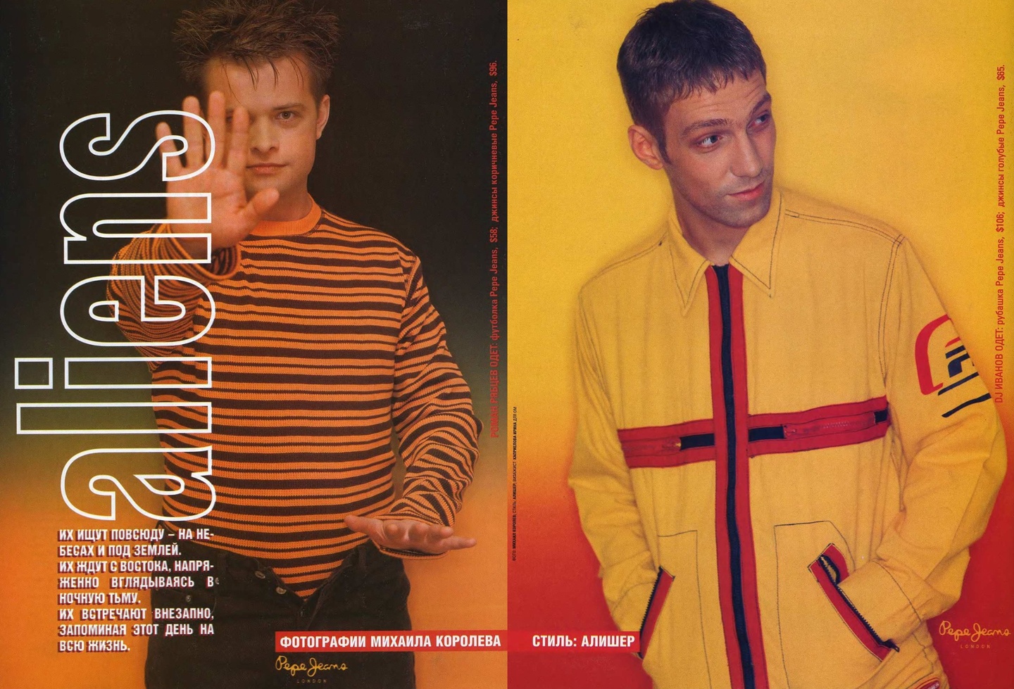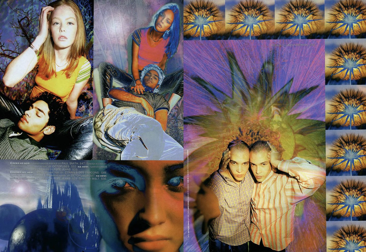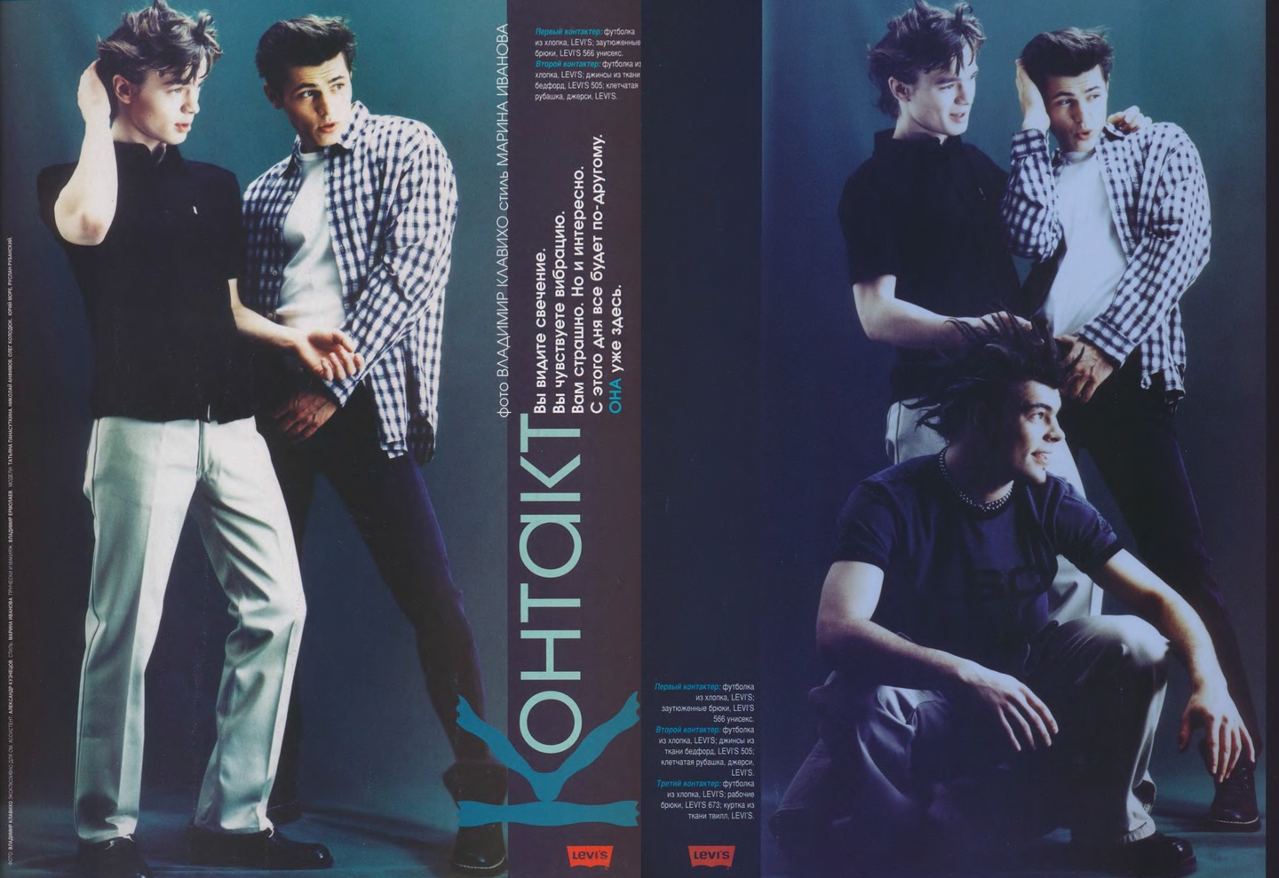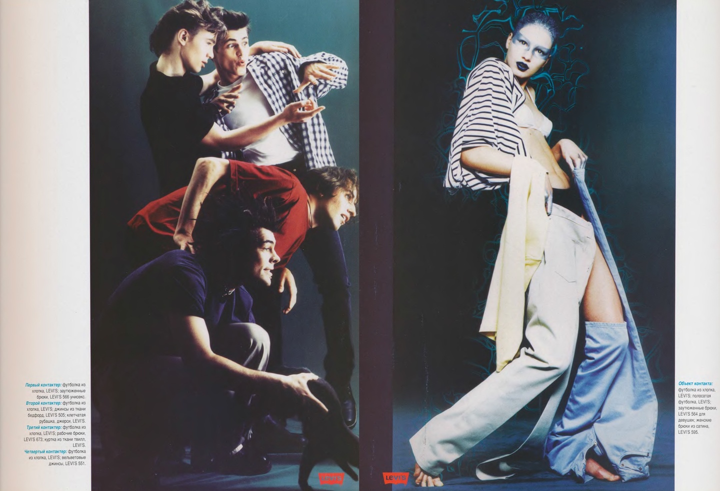 Как и в «Птюче» в «ОМе» был распространен формат съемок с одеждой одного бренда, например, Naf Naf, Levi’s, Tommy Hilfiger или Pepe Jeans. Из-за такого подхода рекламные страницы было интересно рассматривать, а не пролистывать.