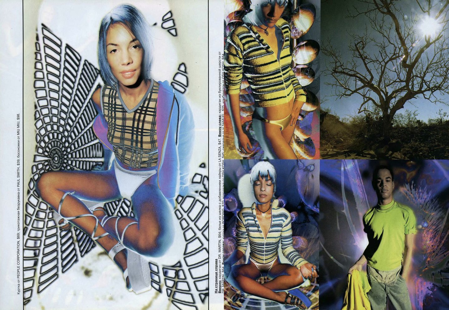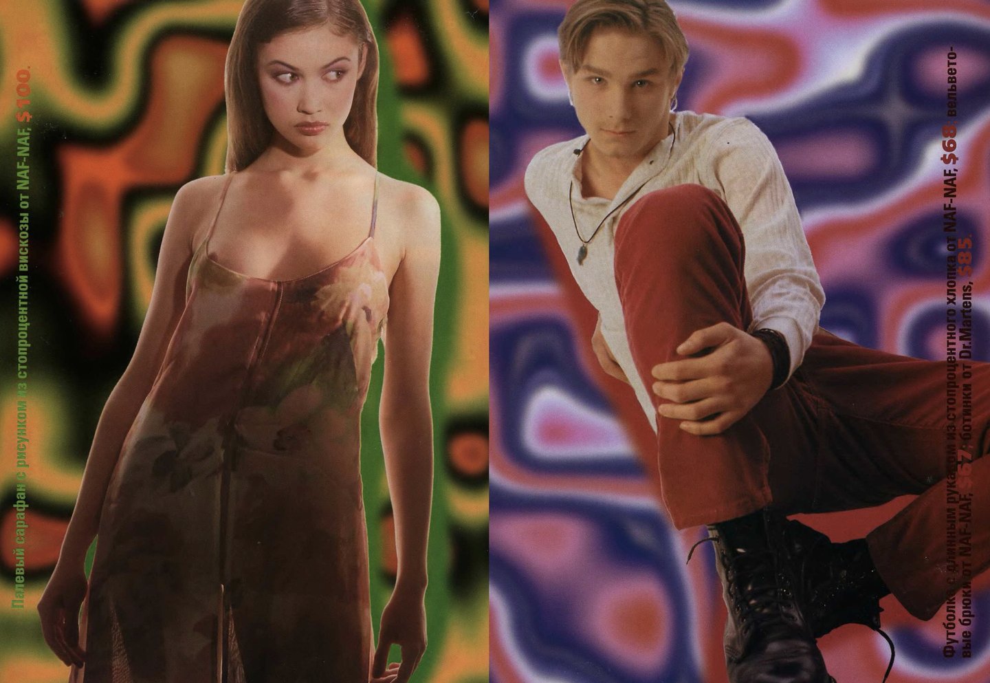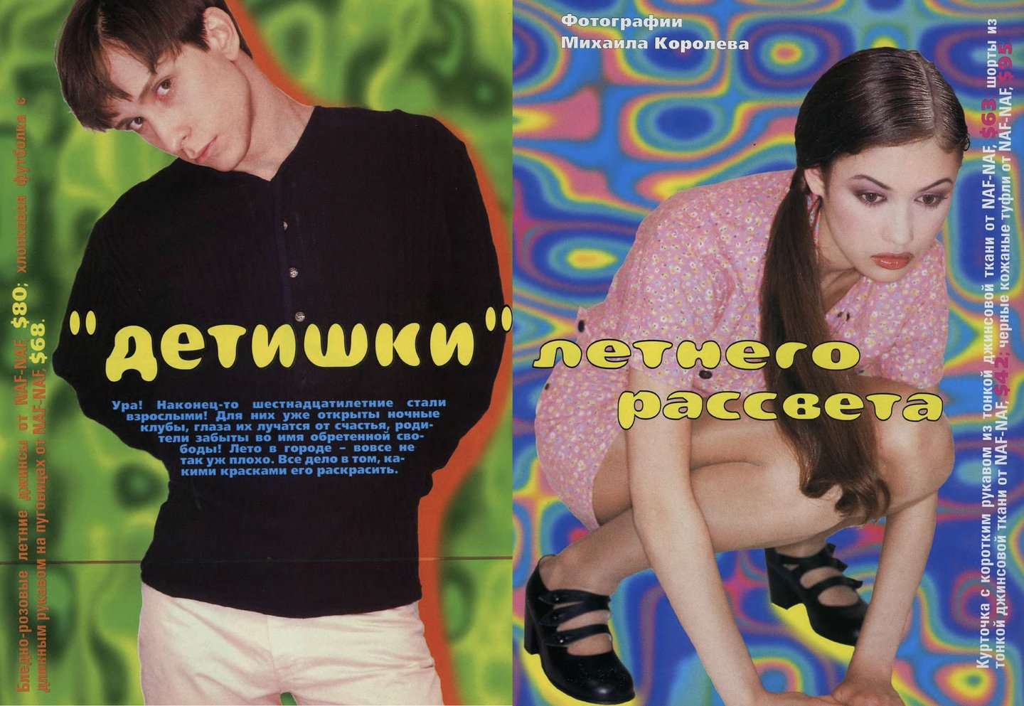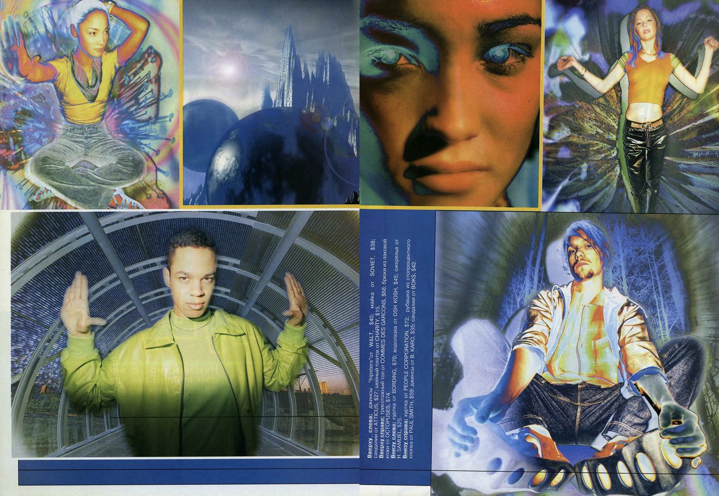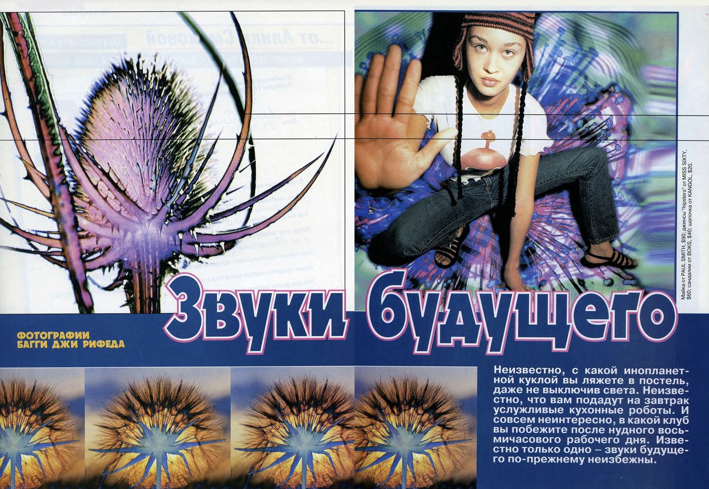Как и в «Птюче» в «ОМе» был распространен формат съемок с одеждой одного бренда, например, Naf Naf, Levi’s, Tommy Hilfiger или Pepe Jeans. Из-за такого подхода рекламные страницы было интересно рассматривать, а не пролистывать.
