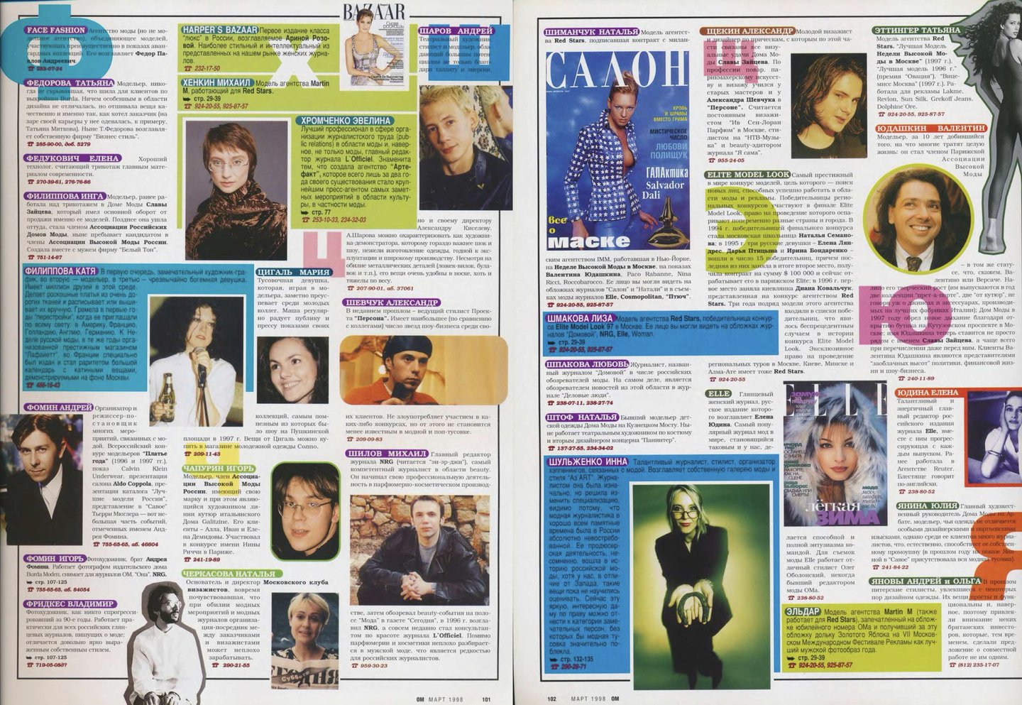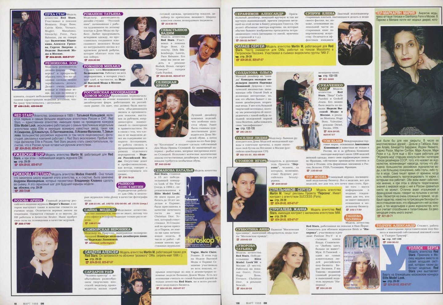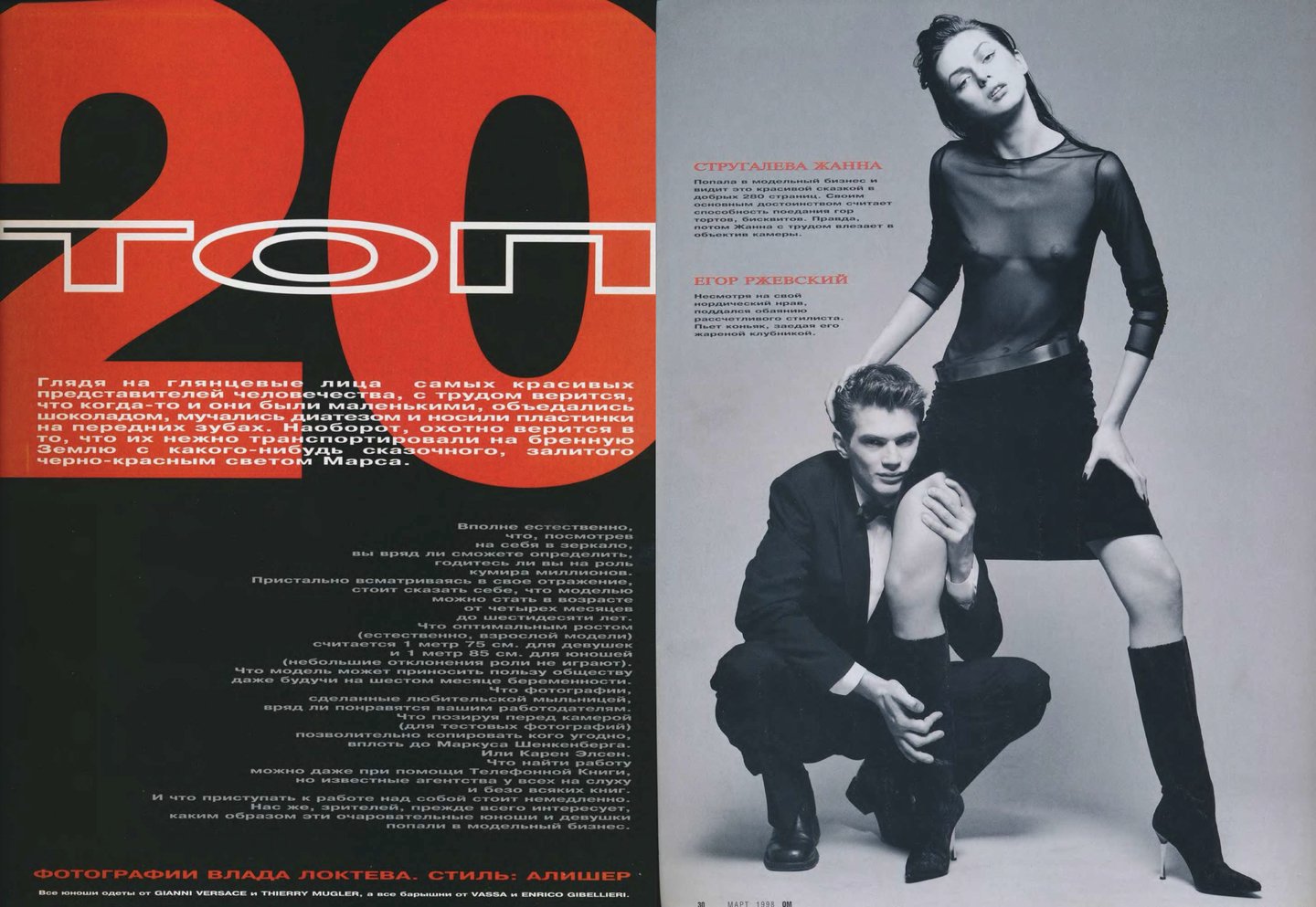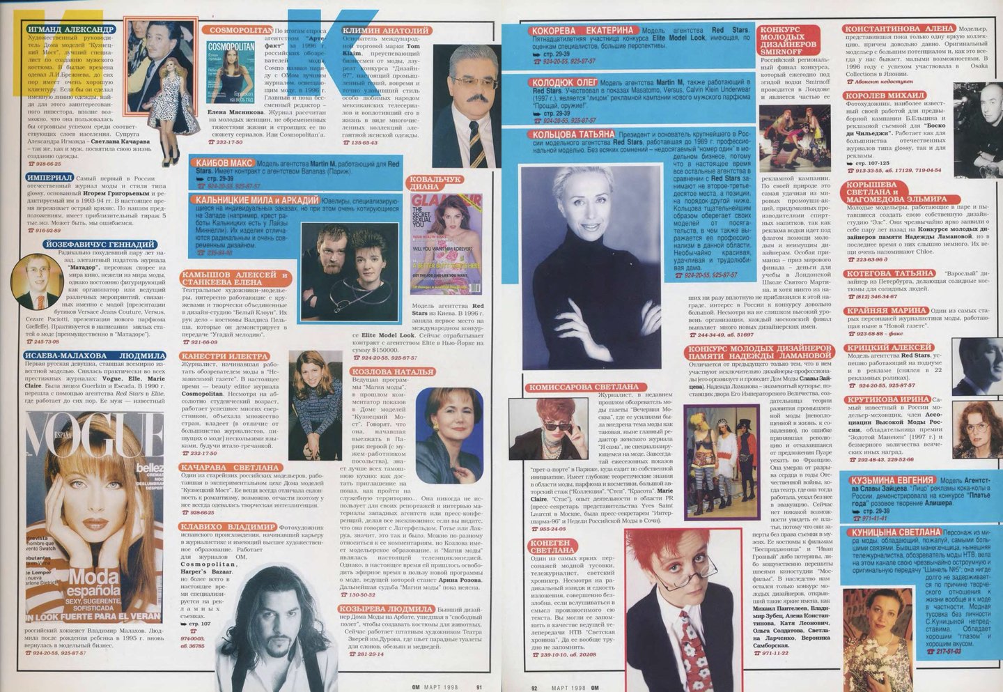 Съемка «Топ 20» самых красивых моделей с одеждой только появившегося тогда бренда Vassa, алфавит «Кто есть кто в российской моде», «Портфолио фэшн-фотографов», интервью с дизайнерами «Блеск и нищета российского модельера» — каждая из этих тем могла бы сделать интересным отдельный номер, но в марте 1998-го редакторы решили «выложить все карты», собрав все это в один номер. А сегодня по этим материалам можно изучать локальную модную индустрию конца девяностных.