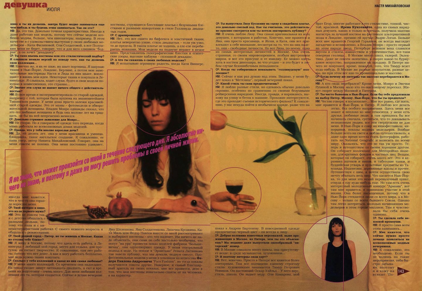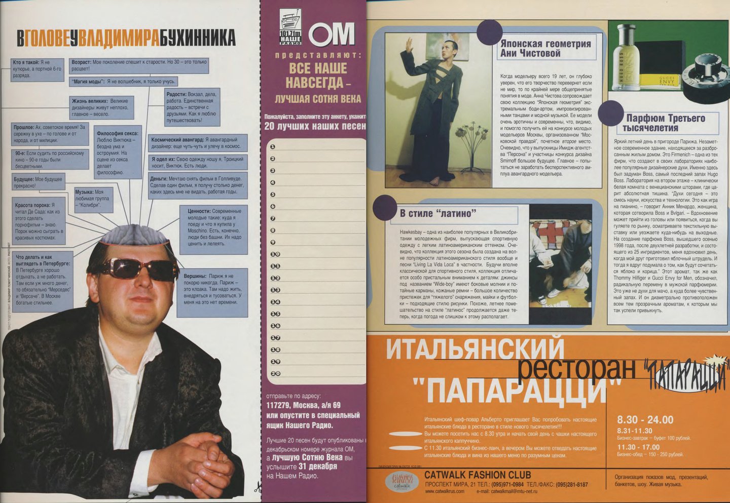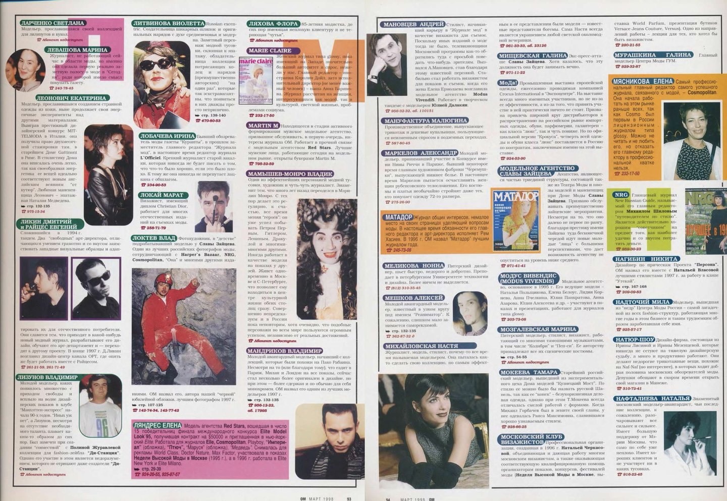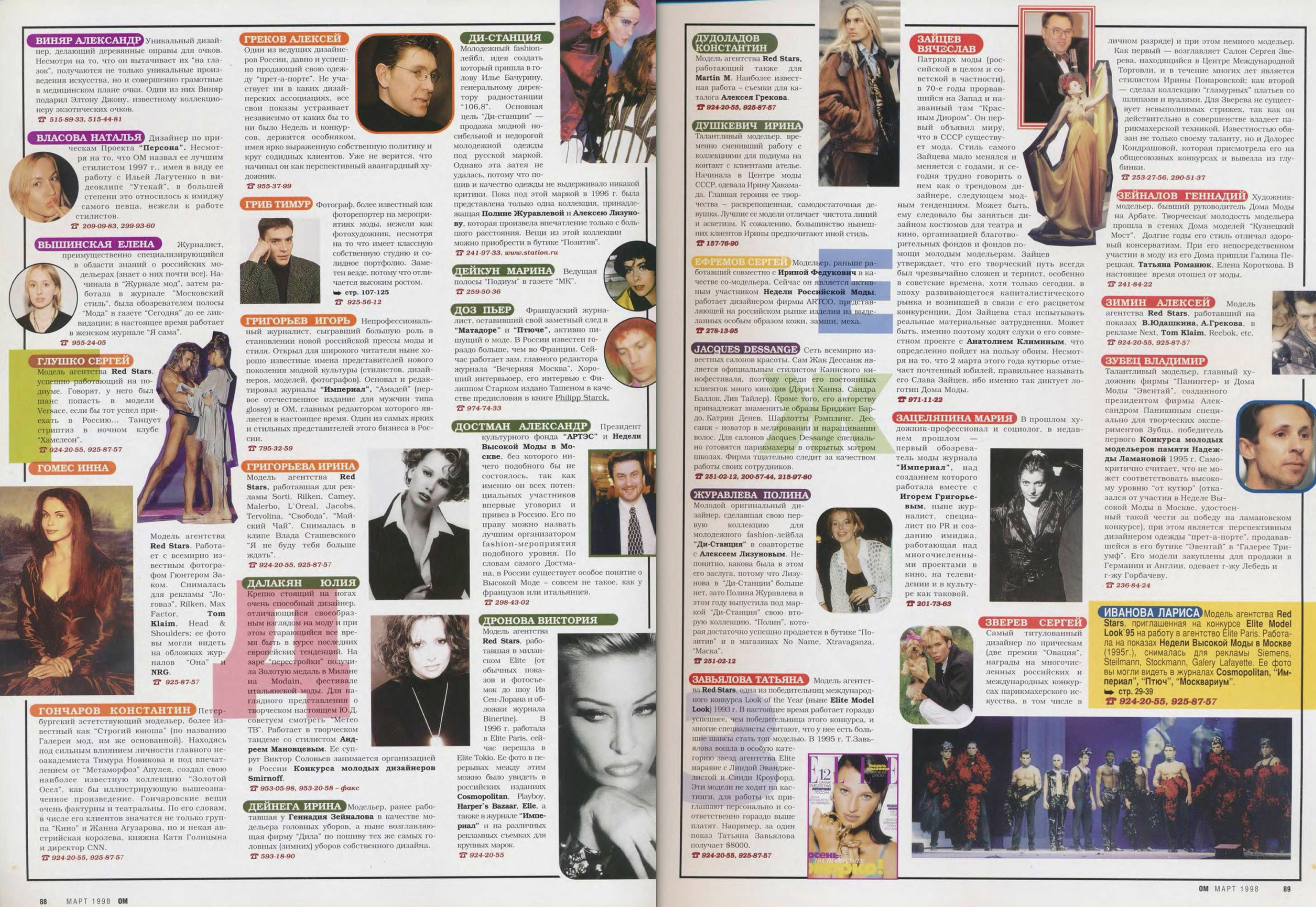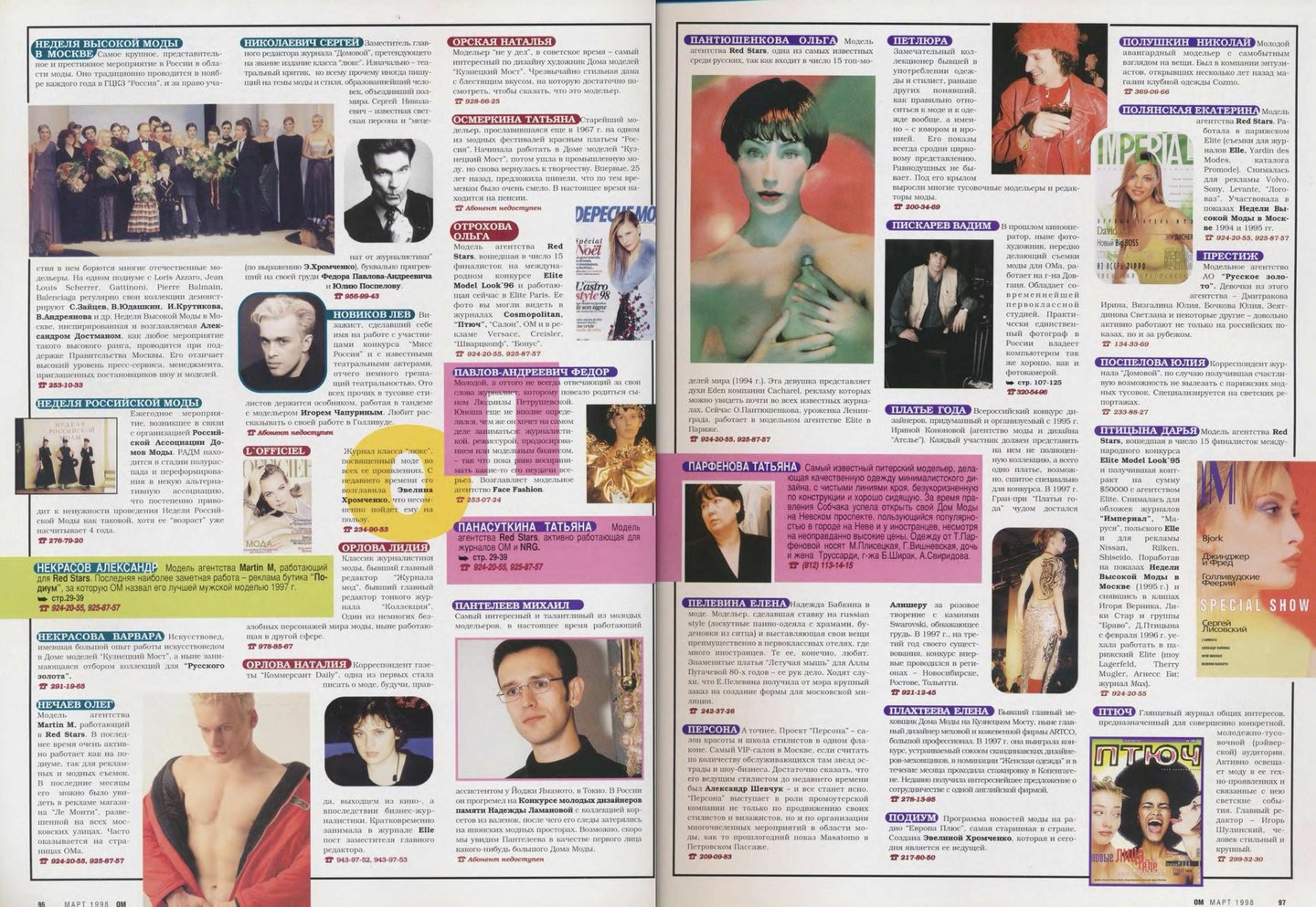 Съемка «Топ 20» самых красивых моделей с одеждой только появившегося тогда бренда Vassa, алфавит «Кто есть кто в российской моде», «Портфолио фэшн-фотографов», интервью с дизайнерами «Блеск и нищета российского модельера» — каждая из этих тем могла бы сделать интересным отдельный номер, но в марте 1998-го редакторы решили «выложить все карты», собрав все это в один номер. А сегодня по этим материалам можно изучать локальную модную индустрию конца девяностных.