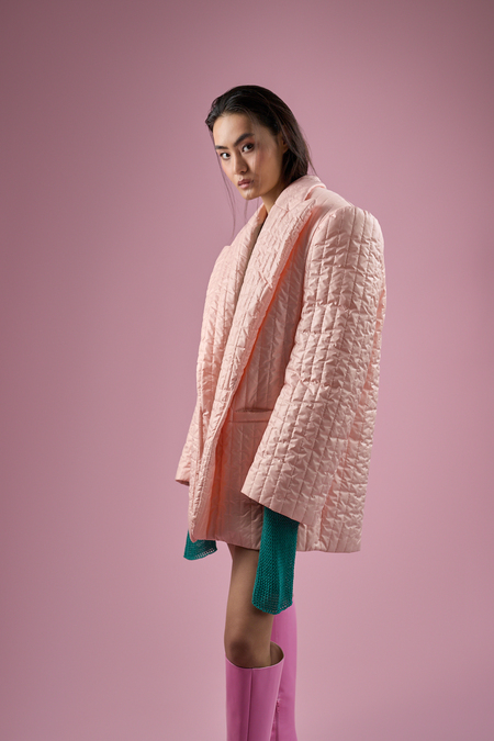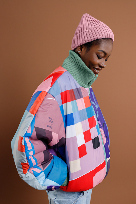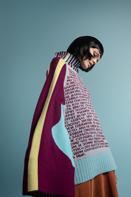 The brand presented two collections with unique artistic solutions. The concept of the FW/SS 2023-2024 collection was a study of the Swiss design school. Pure design form at the peak of the 1950-70s is combined with the punk period of the Swiss international style. And the idea of the latest collection FW/SS 2024-2025 was the theme of peace and space. The concept of space as an unexplored infinity — from a look at the sky, naive plots of de Saint-Exupery to neo-futurism, technology and the search for the essence and existence of the Universe — all this is space. These ideas were embodied in complex graphics, textures of colored space gas, prints on the skins of spaceships and traces of heroes colonizing planets. The brand works in techniques that are fresh for modern fashion — carefully measured geometrism of form, color, poster language in stylization, leading to a sign, photography, inversion, grotesque and much more.