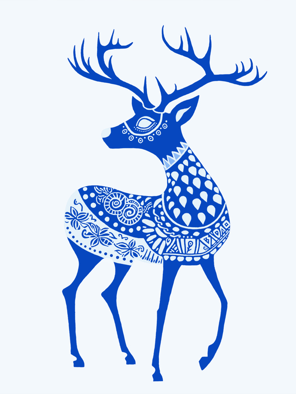 Персонаж: олень. Роспись: гжель. Время года: зима.