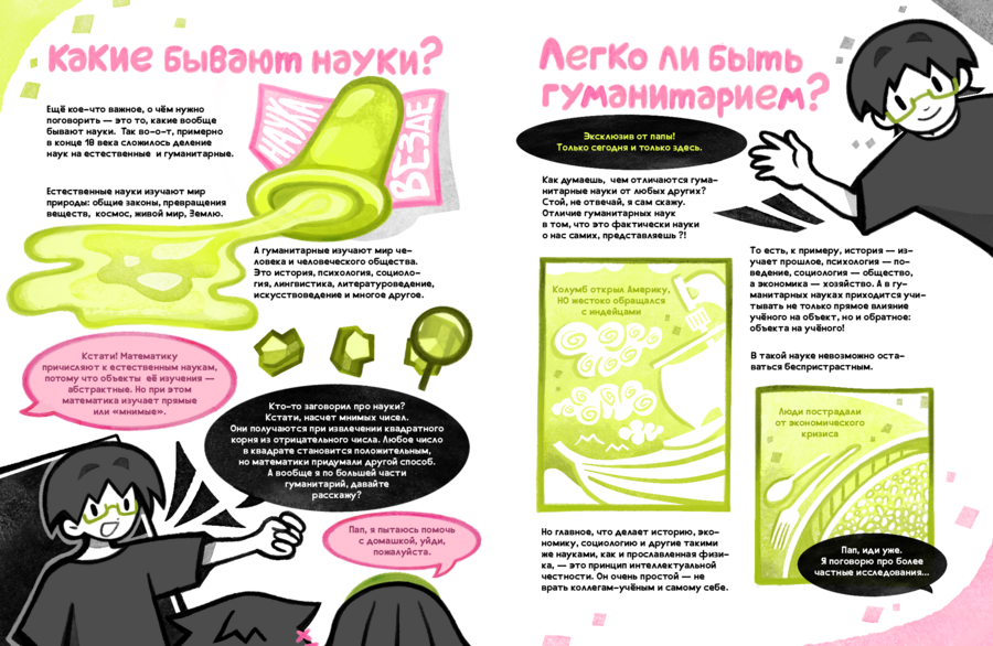 Нон-фикшн комикс про науку. Стеша возвращается домой с заданием — сочинение на тему «Что такое Наука?». Запутанная и раздражённая, она просит помощи у старшей сестры Сони. Однако та, вместо простого объяснения, начинает рассказывать всё, что ей известно.